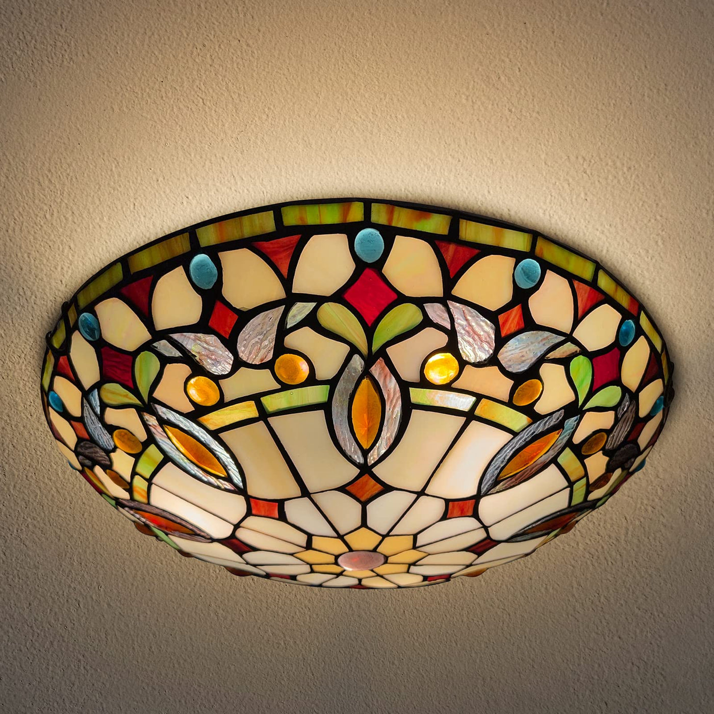 This Flush Mount Light Is Crafted From Real Stained Glass, Providing A Warm And Inviting Glow That Transforms Any Room. With A Wide 16-Inch Diameter And A Height Of 4.5 Inches, It Is The Perfect Size For Areas Where Ceiling Space Is Limited. The Artzone Flush Mount Light Accommodates Up To Three Light Bulbs, Offering Versatility In Brightness While Maintaining A Sophisticated Aesthetic.