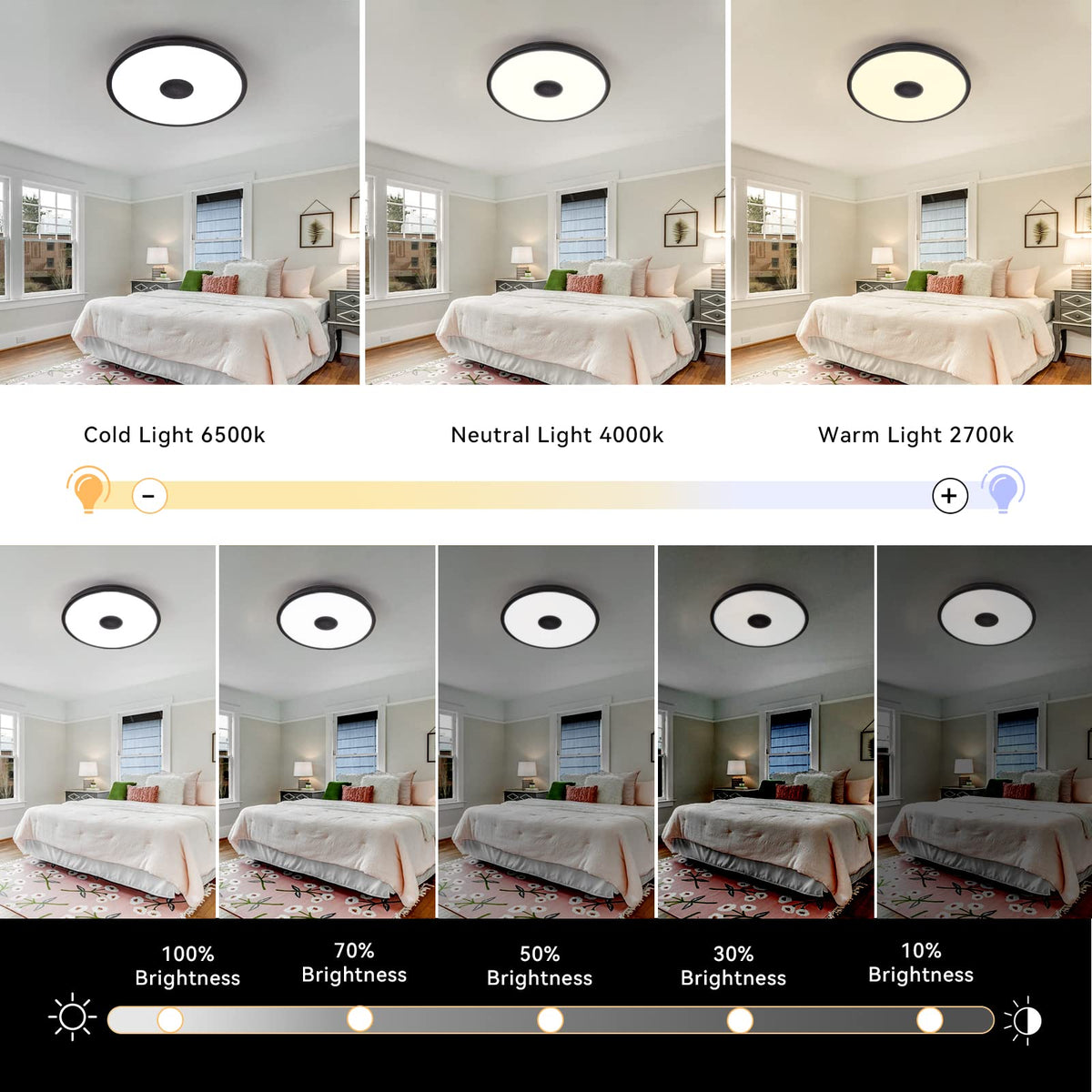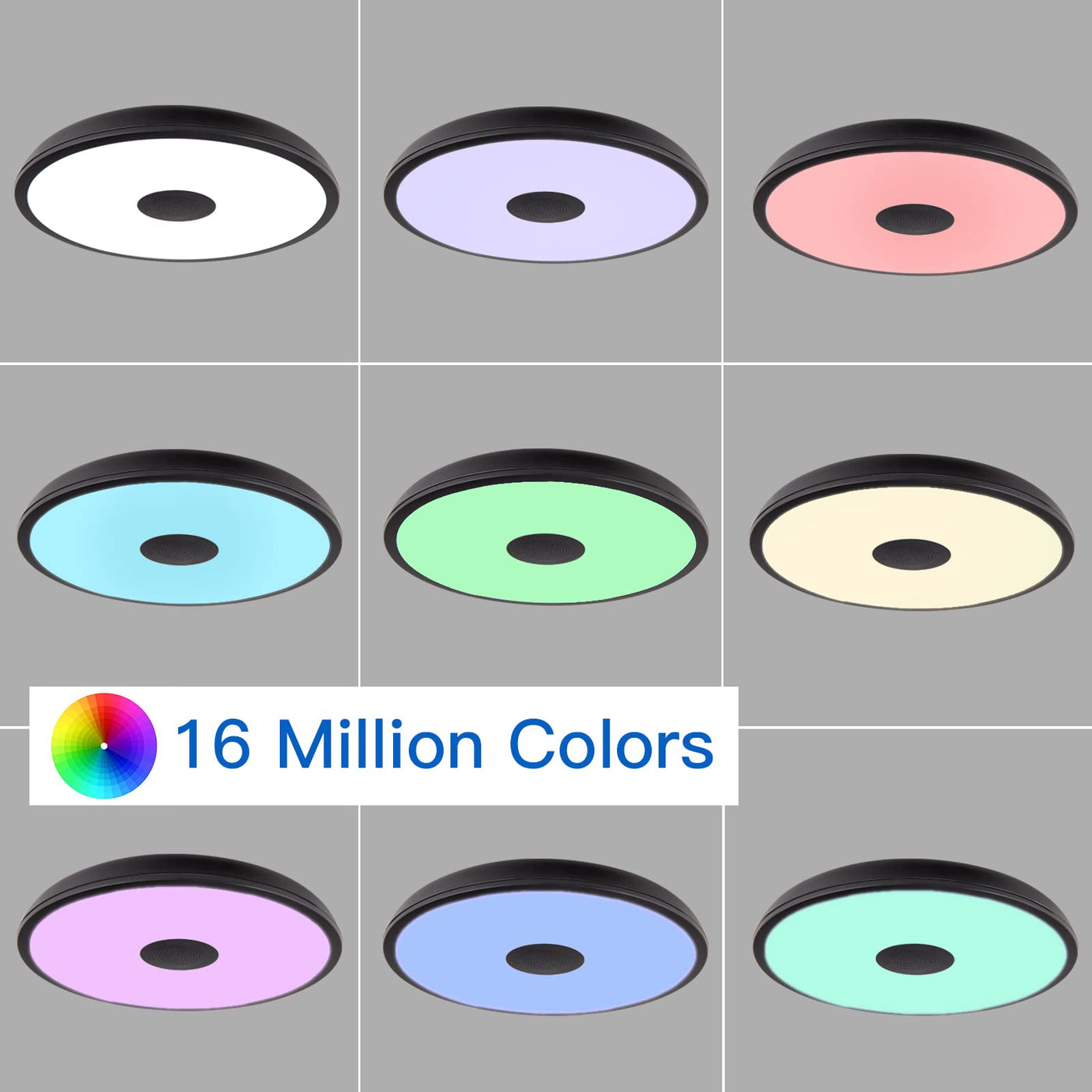 Asall Black Waterproof Led Ceiling Light Fixture,With Bluetooth Speaker,11 Inch,18 Watt, 2700K-6500K Dimmable Music Lamp,Rgb Col