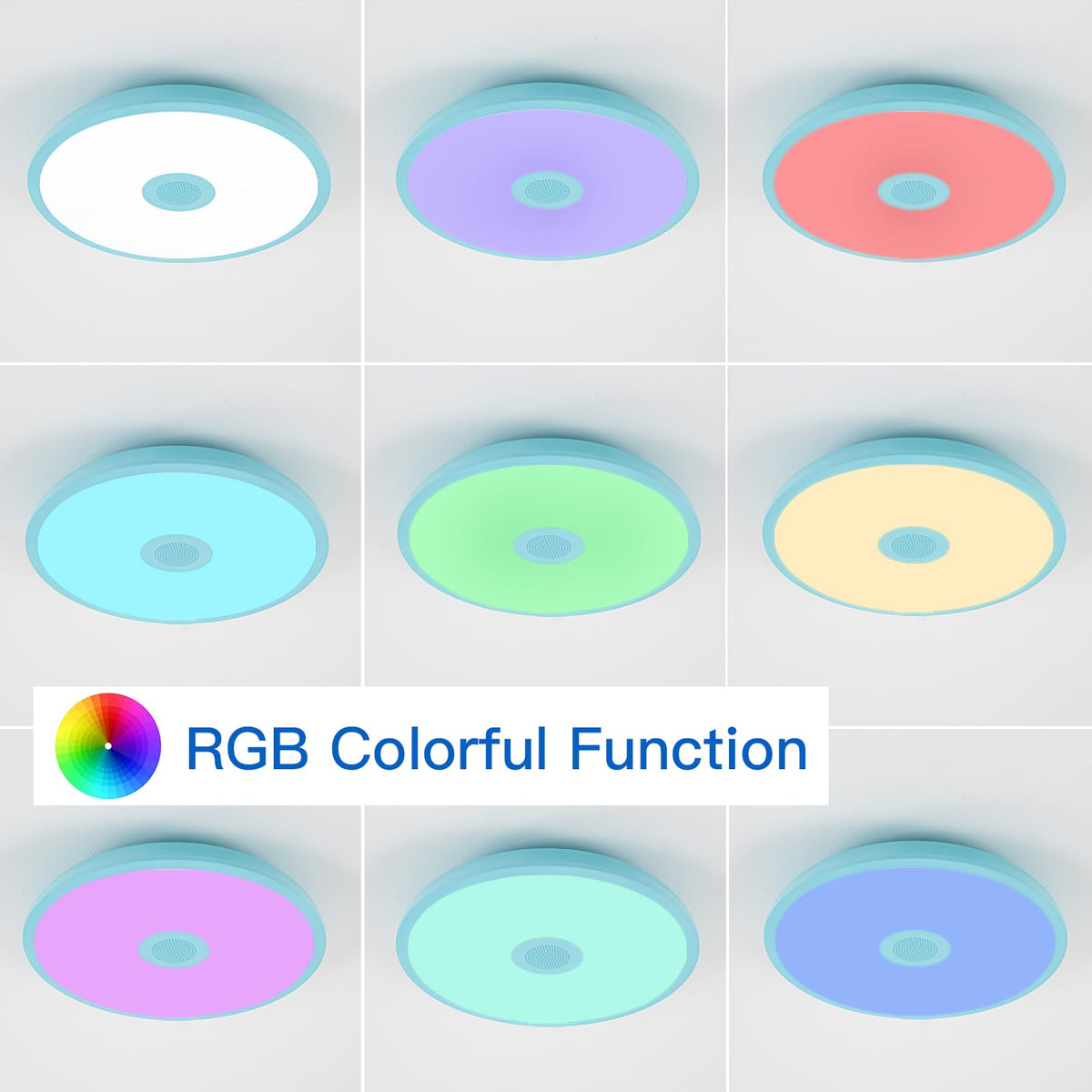 Asall Sky Blue Waterproof Led Ceiling Light Fixture,Music Ceiling Lamp,With Bluetooth Speaker,11Inch 18W, 2700K-6500K Dimmable R