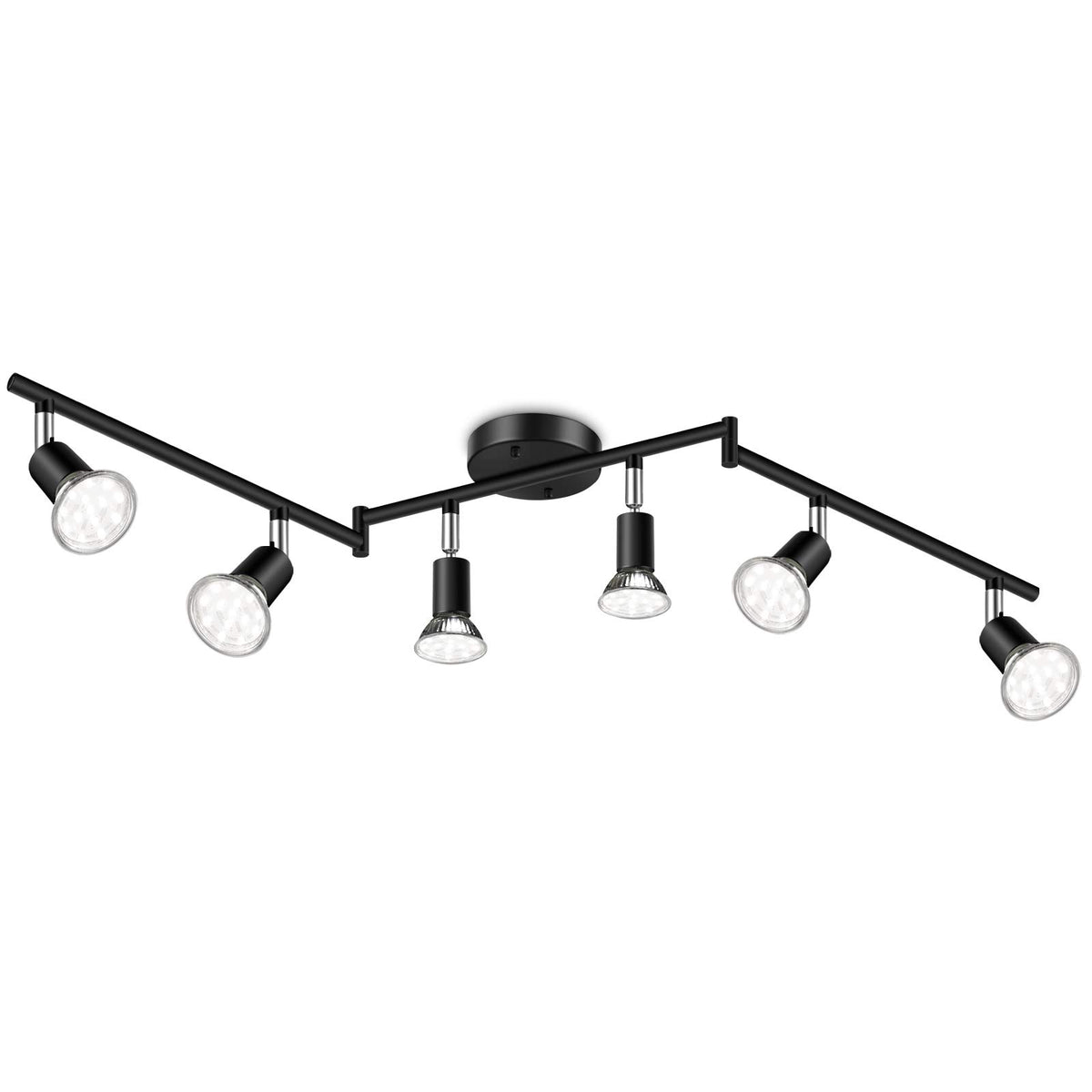 Ascher 6-Light Led Track Lighting Kit, Flexibly Rotatable Light Heads, 6 Way Ceiling Spotlight Black Finish, Including 6 Gu10 Le