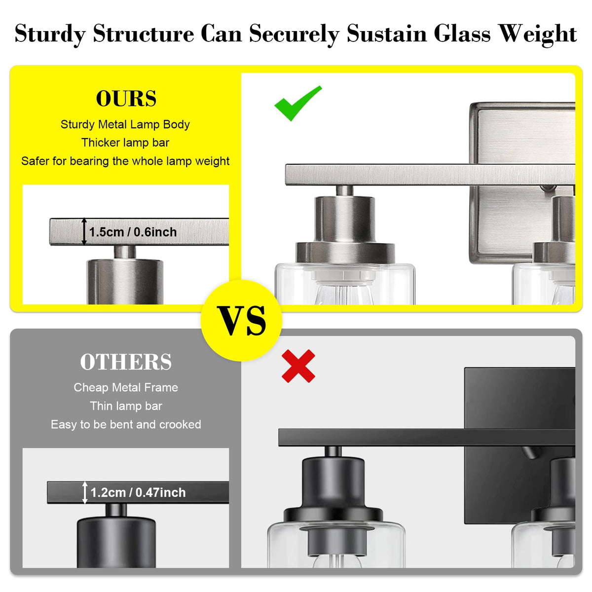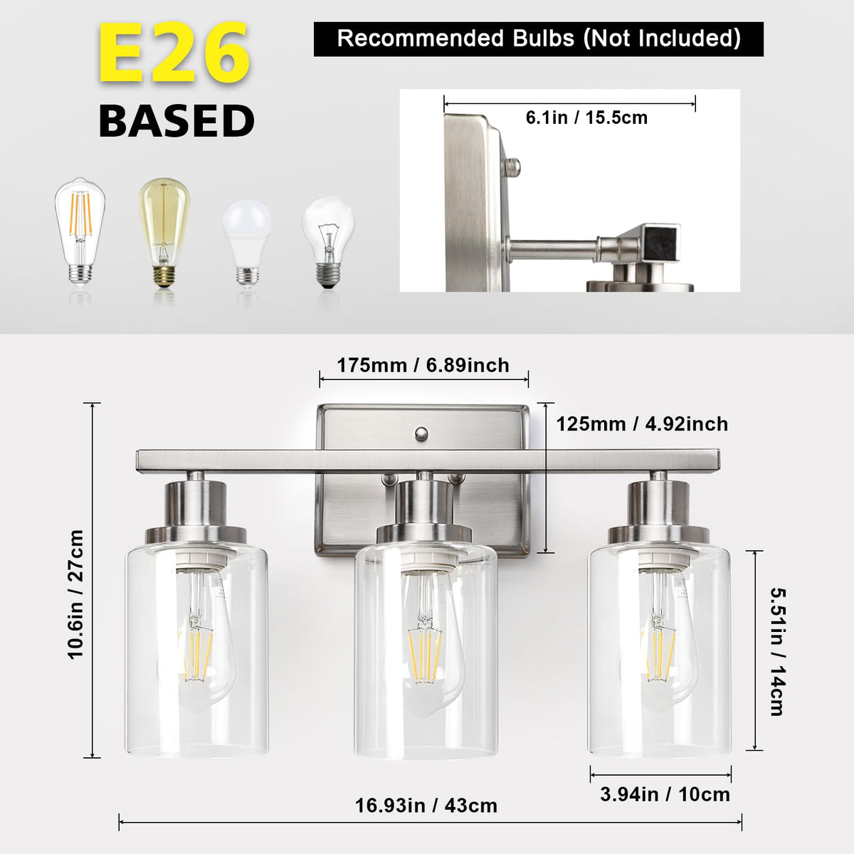 Ascher Bathroom Vanity Light Fixtures, 3 Light Wall Sconces Lighting With Clear Glass Shade, Brushed Nickel Wall Lights For Mirr