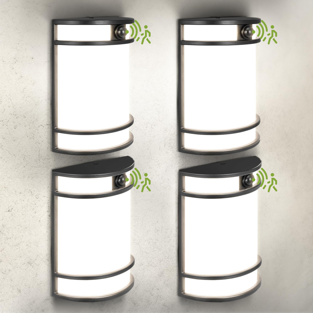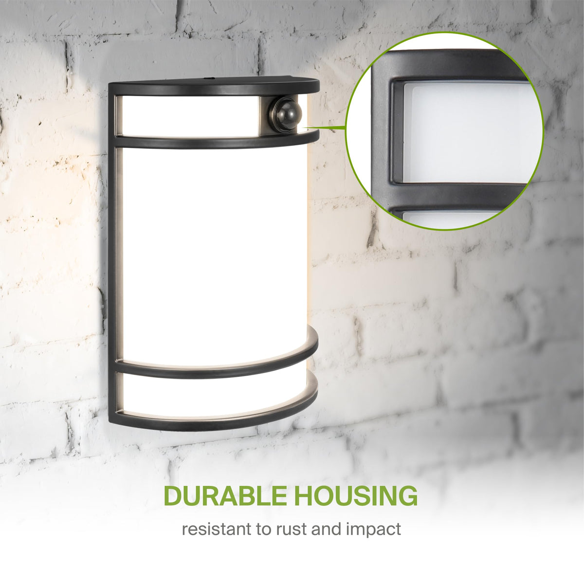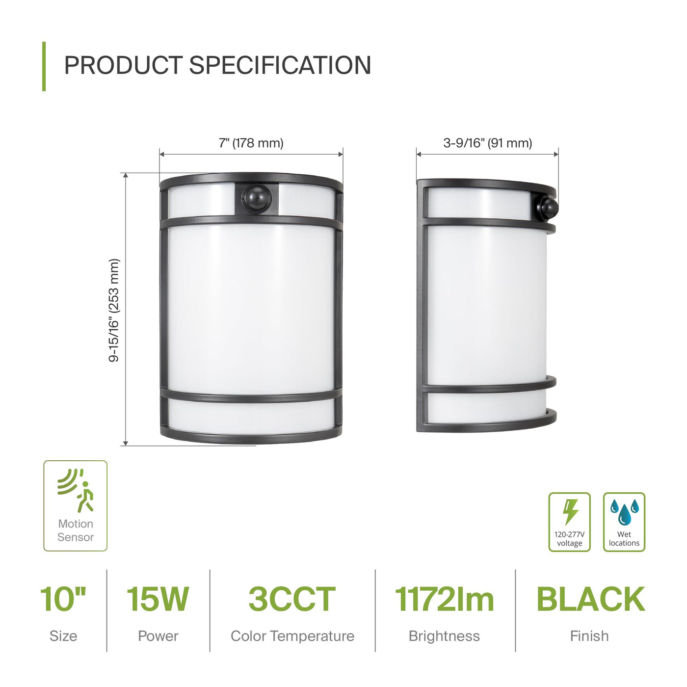 ASD 10 Inch LED Outdoor Wall Mount Light Fixture with Motion Sensor - Matte Black Wall Sconce Lighting - 15W 120-277V 3000K 4000