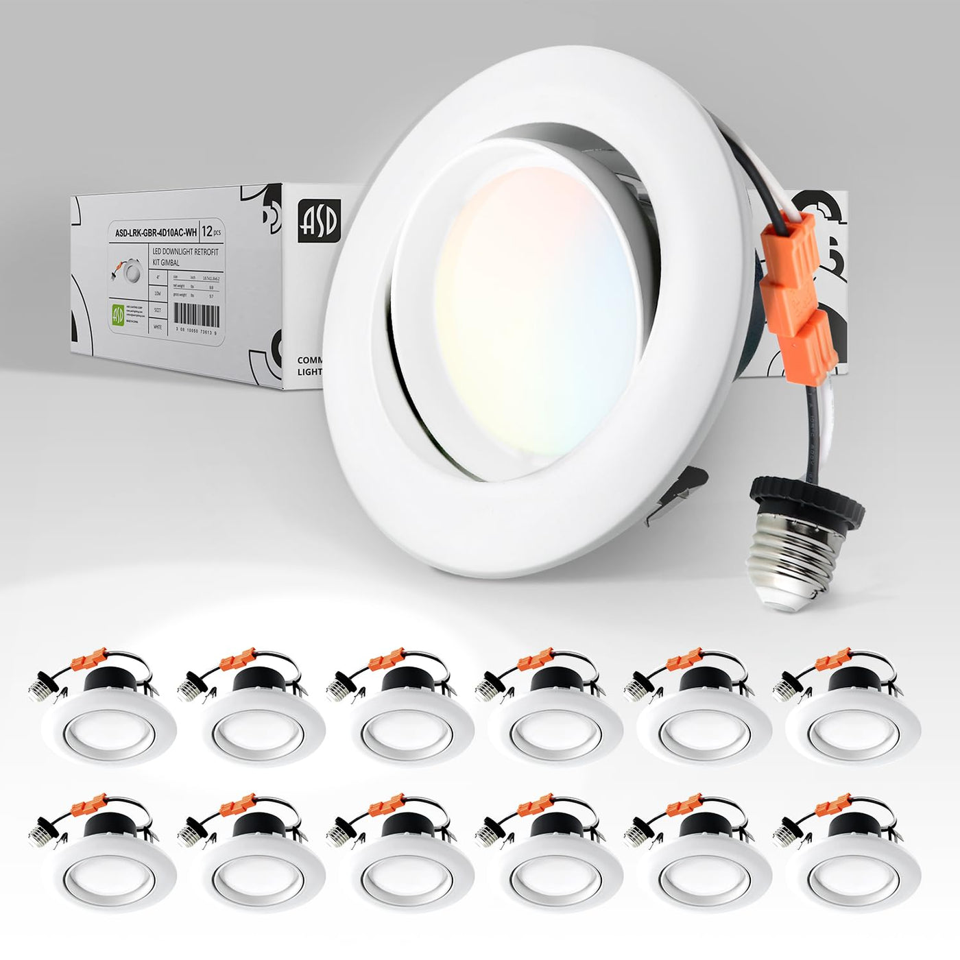 Asd 10W 4" Gimbal Led Downlights - Adjustable Dimmable 860Lm, White Trim, 12 Pack