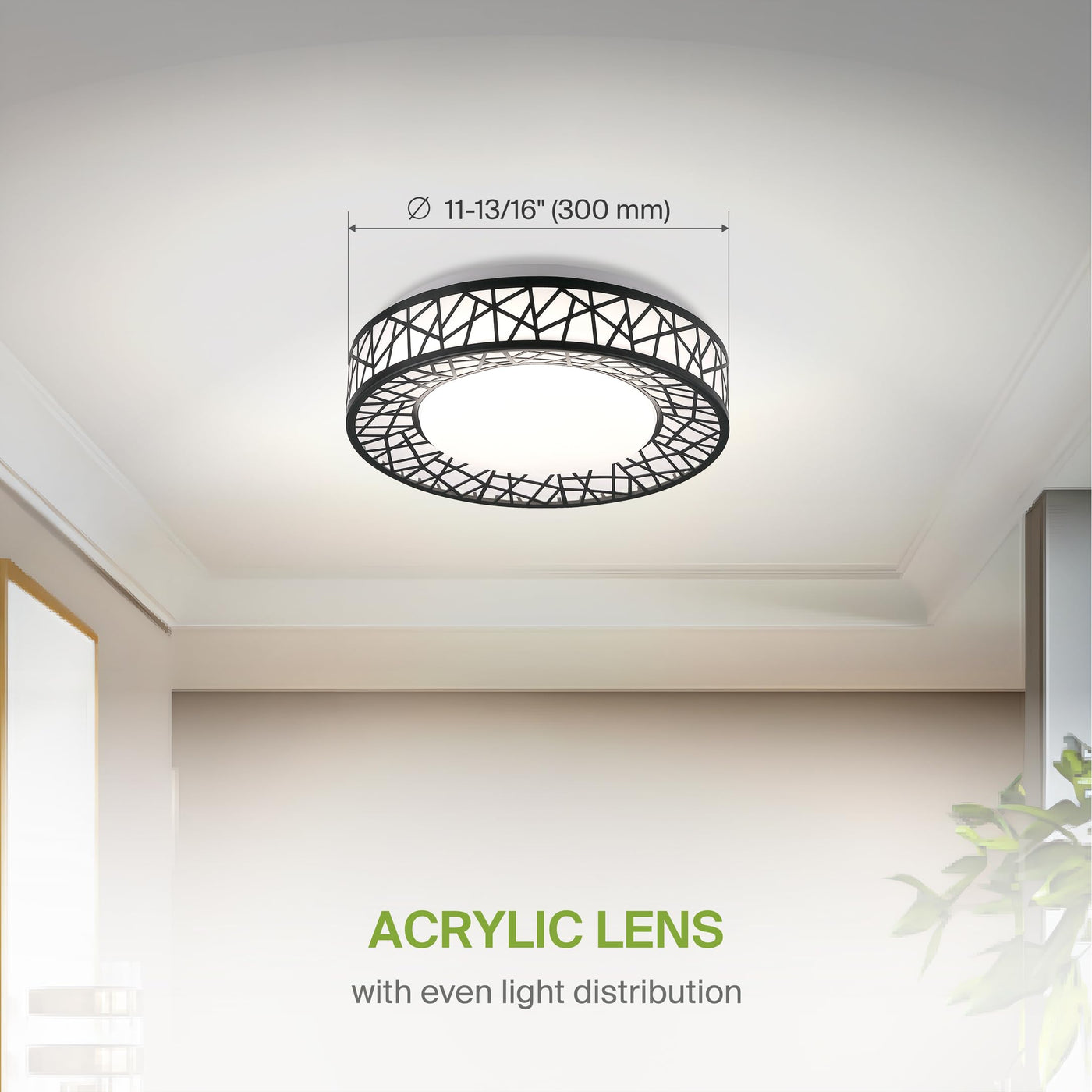 ASD 12 Inch LED Flush Mount Ceiling Light, 20W 1113LM, Dimmable, Iron Housing, Matte Black, Model A-LOFT-FM-12D20BK