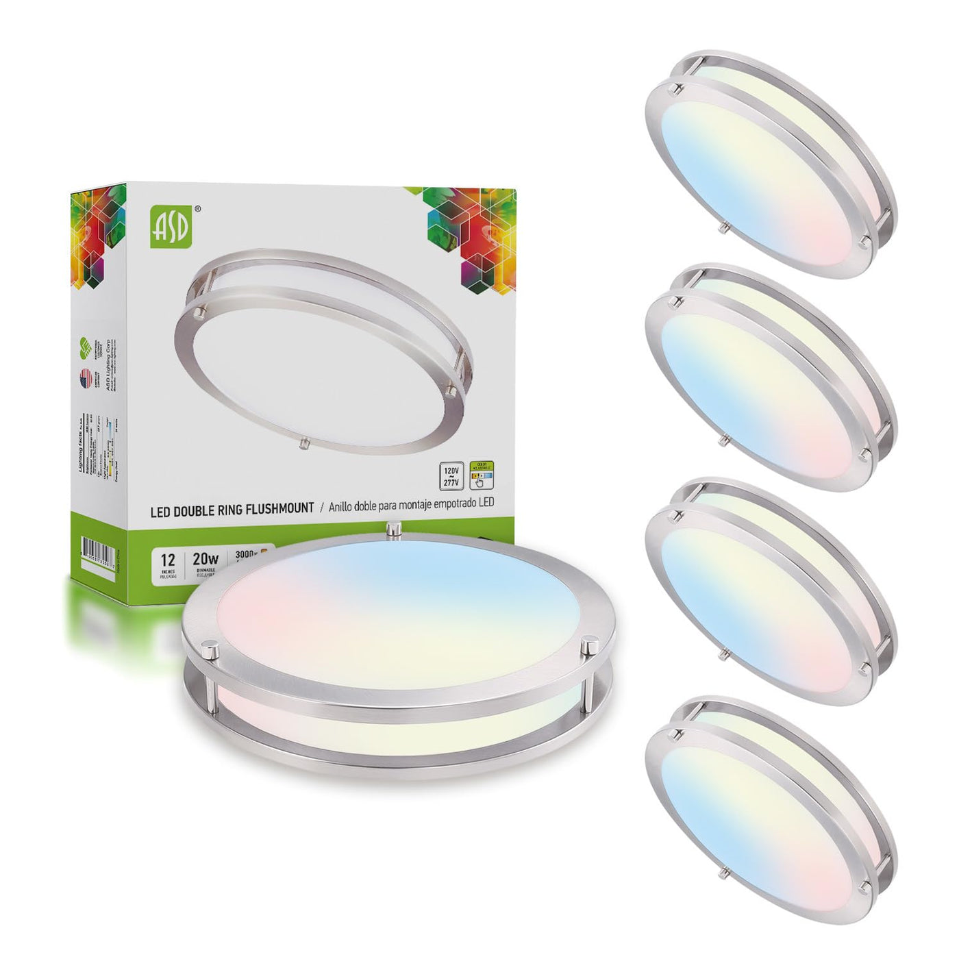 The ASD Brushed Nickel 12-Inch LED Ceiling Light is a versatile lighting solution designed for various indoor spaces, including kitchens, bathrooms, living rooms, and hallways. This fixture combines modern aesthetics with energy-efficient technology to enhance your home or office environment.
