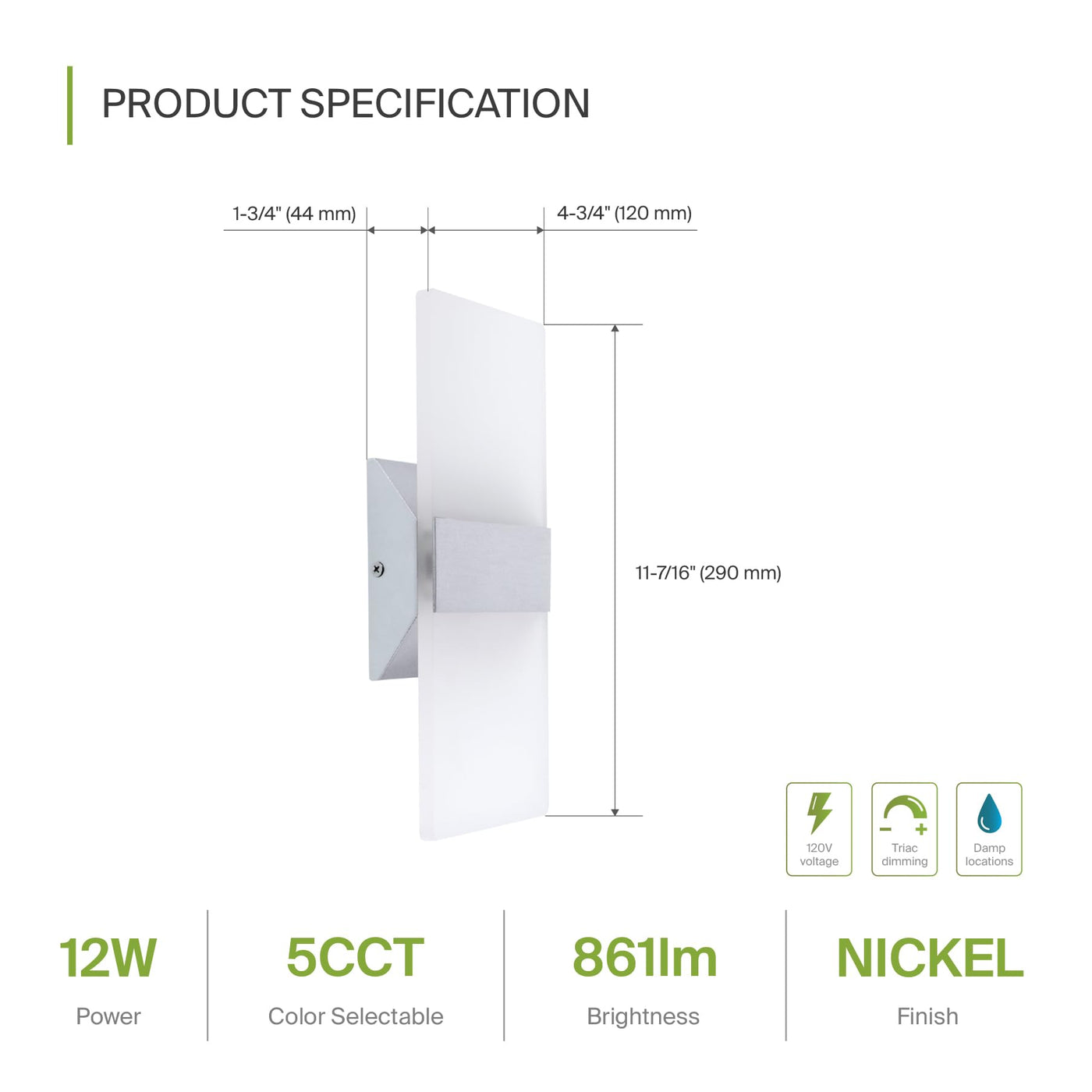 Asd 12 Inch Led Indoor Wall Sconce - Modern Interior 12W 2700K-5000K Adjustable Dimmable Wall Mounted Light Fixtures, Acrylic Gl