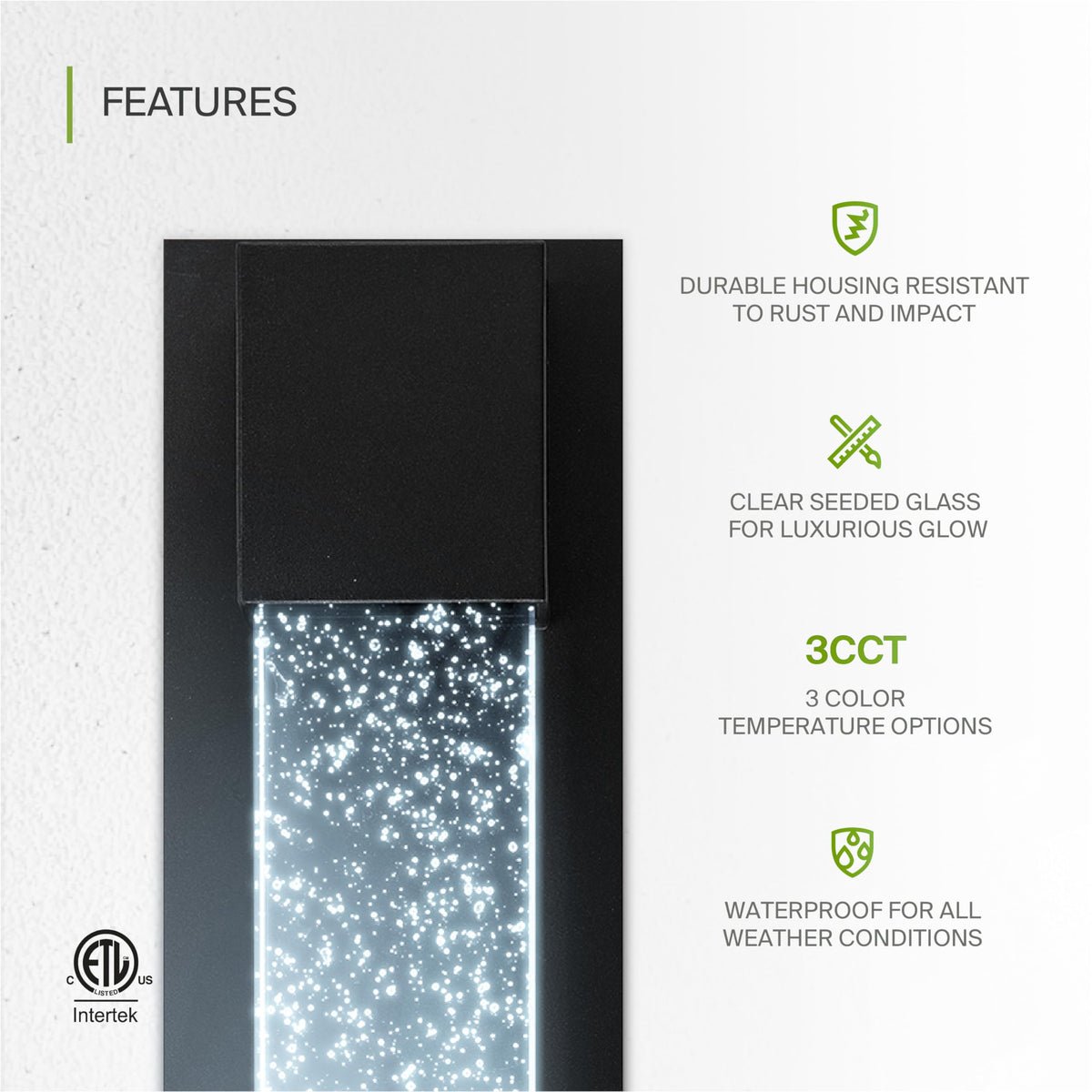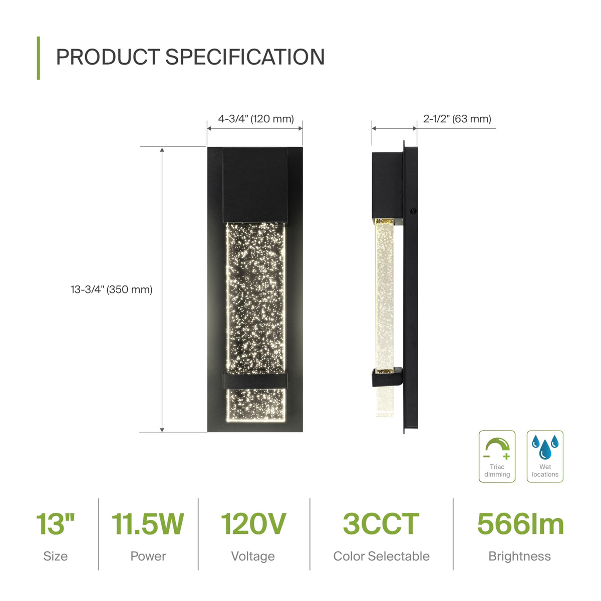 Asd 13" Led Bubble Glass Wall Light | 12W 500Lm Dimmable, Waterproof, Etl Listed, Black