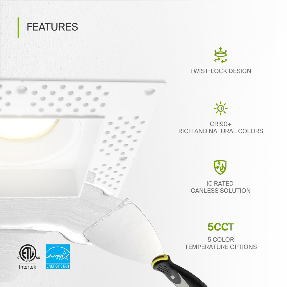 - **Easy Installation**: This IC-rated trimless recessed light requires no can or housing, making installation a breeze. Its wet location rating allows for use in high-humidity areas, such as bathrooms and kitchens.