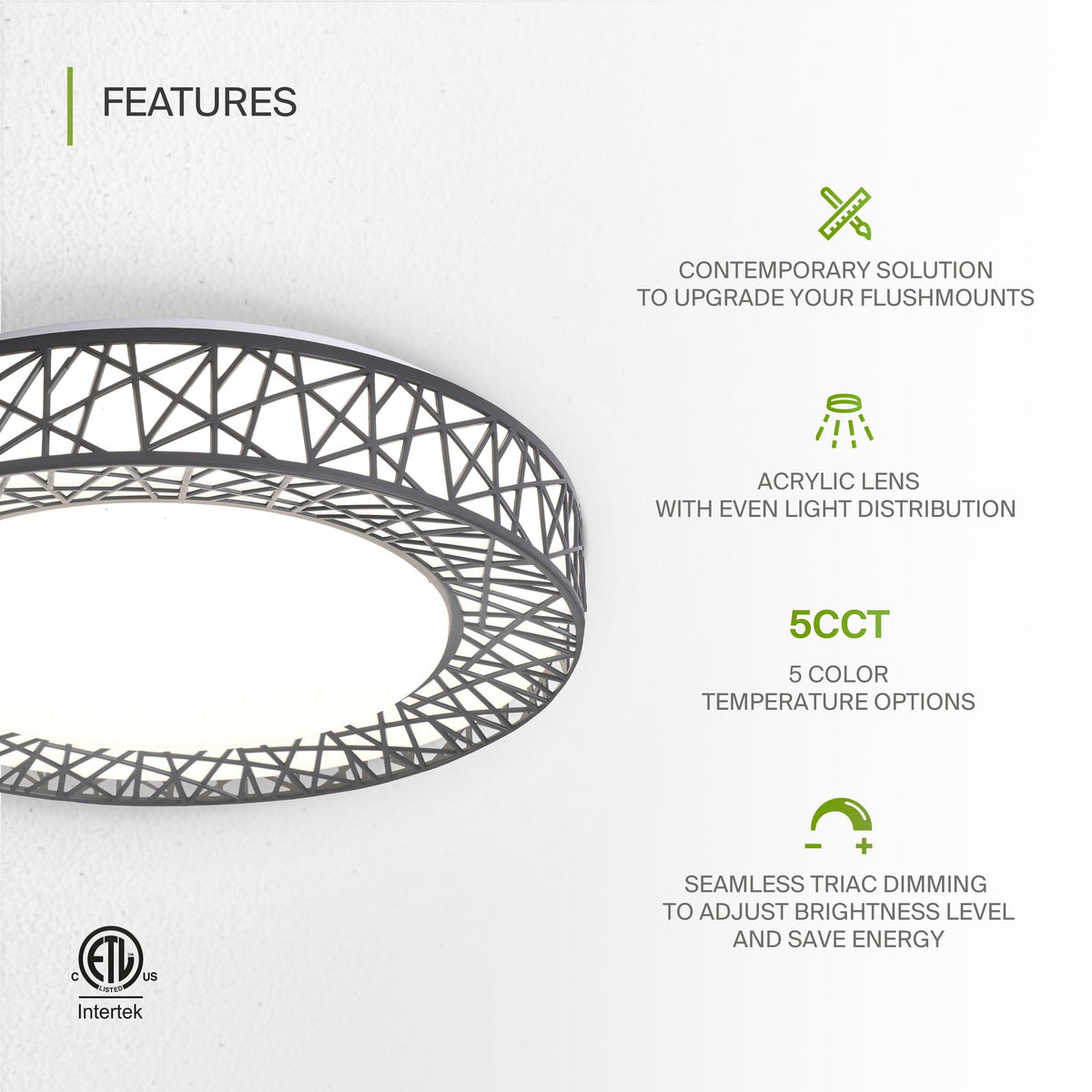 The ASD LED Flushmount Comfort series offers a modern lighting solution designed to enhance any living space. This versatile 16-inch ceiling light fixture provides bright, smooth lighting, making it ideal for areas such as living rooms, bedrooms, kitchens, bathrooms, and entryways.