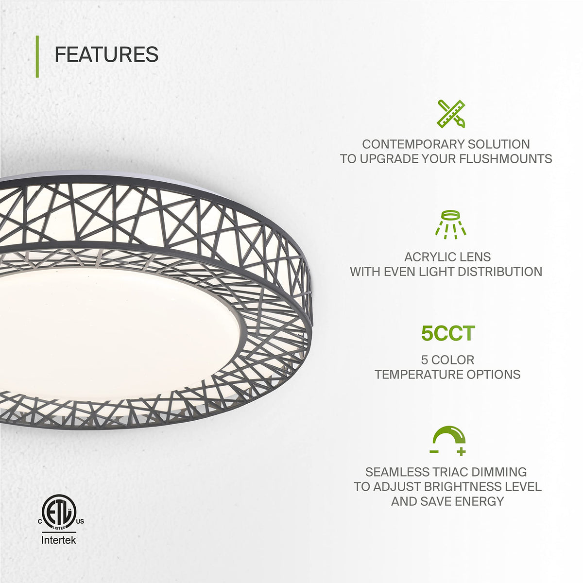 Asd Led Flushmount Comfort Series Of Led Ceiling Light Provides Bright, Yet Smooth Lighting For Your Living Room, Bedroom, Kitchen, Bathroom, Entryway, Closet, Or Any Other Common Area Of Your House. It Can Be Used As An Additional Room Light To An Already Existing Overhead Ceiling Light As Well. This 16 Inch Led Lamp Will Save You A Significant Amount Of Money In Its Lifetime By Providing High Lumen Output With Low Energy Consumption. Choose From Several Different Styles, From Rustic And Boho To Minimal Classic To Match Your Interior Design. Made With High Quality Materials, Our Led Lights For Room Are Sure To Look Great For Years. This Ceiling Light Fixture Is Also Color Adjustable, You Can Choose From 2700K Soft White, 3000K Warm White, 3500K Neutral White, 4000K Cool White, Or 5000K Daylight Color Temperatures With A Simple Switch. The Loft Style Brushed Nickel Flush Mount Ceiling Light Is The Perfect Accent To An Urban Environment. The Metal Construction Fits Well With Any Modern Or Industrial Interior Design.