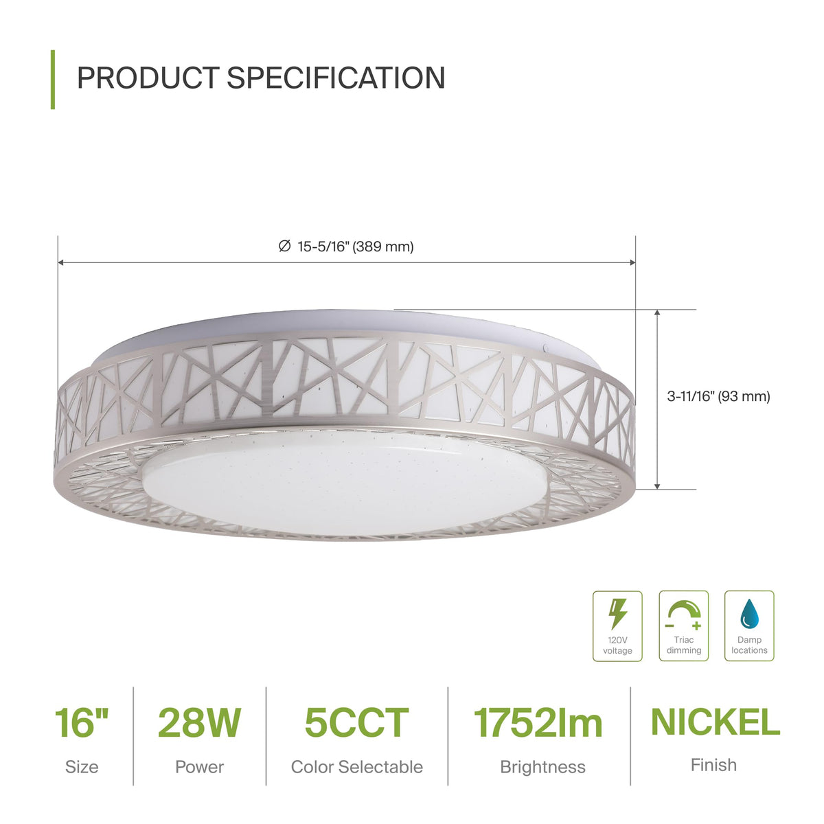 Asd 16 Inch Led Flush Mount Ceiling Light - Brushed Nickel Modern Ceiling Light Fixture 28W 1752Lm, 2700-5000K Adjustable Dimmab