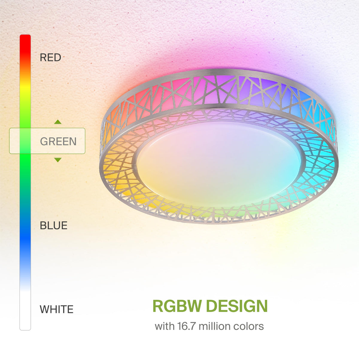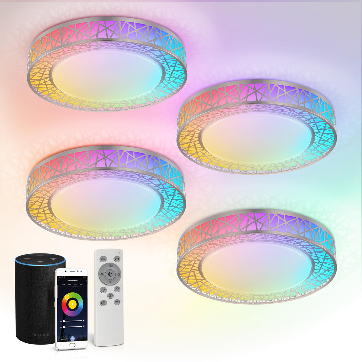 ASD 16 Inch Smart RGBW Ceiling Light - Dimmable, Remote Control, WiFi, Alexa & Google Assistant, Brushed Nickel, 4 Pack, Model A-LFM16D28