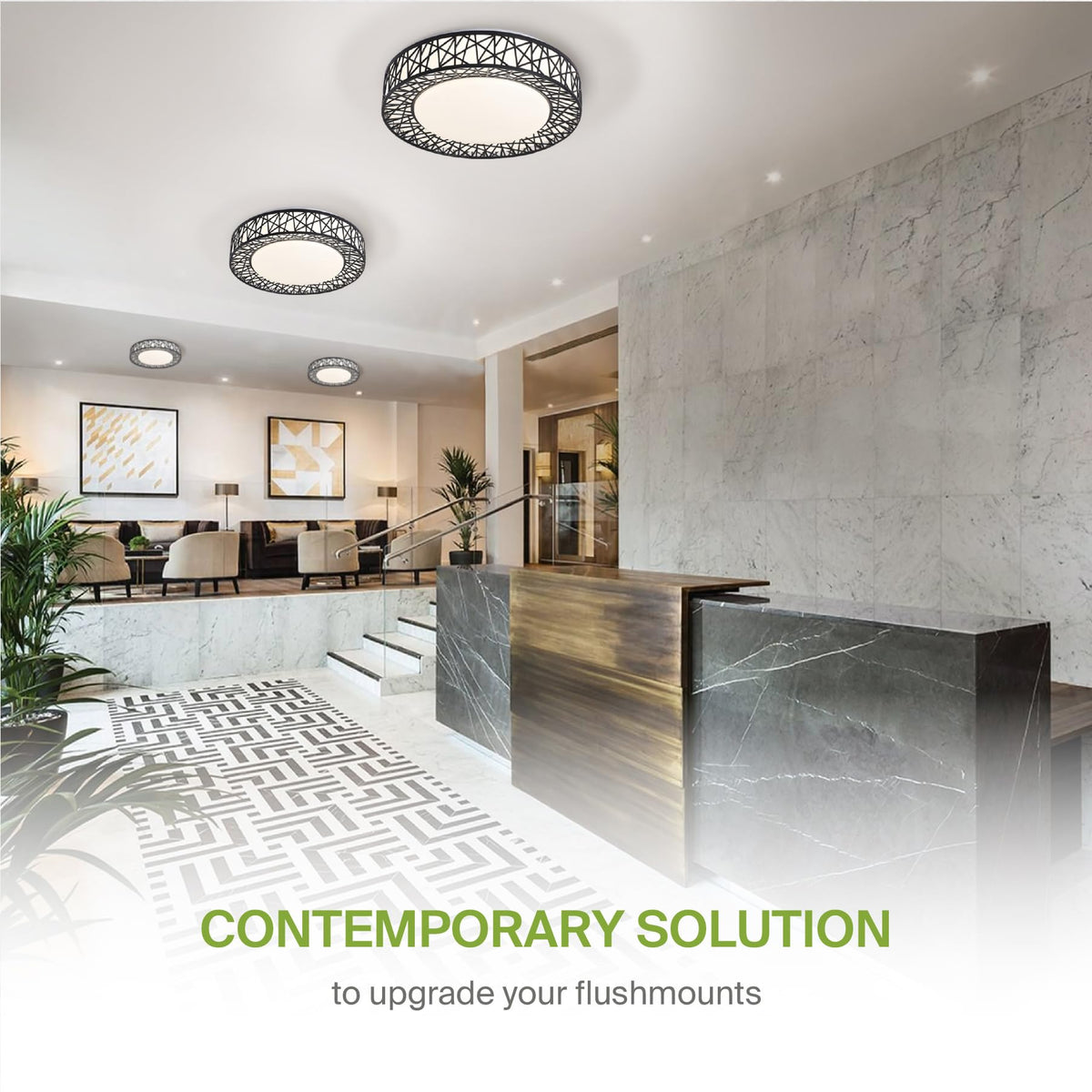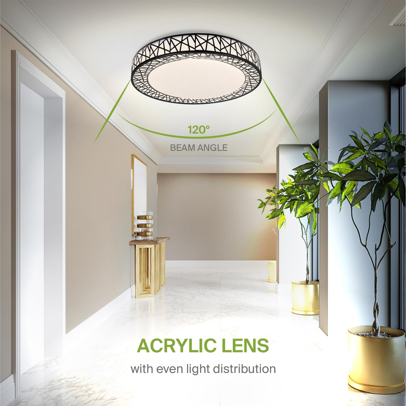 Crafted from well-made materials, the 16-inch LED lamp features a durable metal construction with a matte black finish, ensuring longevity and visual appeal. The flush mount design is ideal for low ceilings and adds a touch of elegance to any space. With energy-efficient technology, this lighting fixture delivers high lumen output while minimizing energy consumption, making it a cost-effective choice for your home. Additionally, the color-adjustable feature allows you to select from multiple color temperatures—2700K Soft White, 3000K Warm White, 3500K Neutral White, 4000K Cool White, or 5000K Daylight—providing versatility to suit different moods and activities.