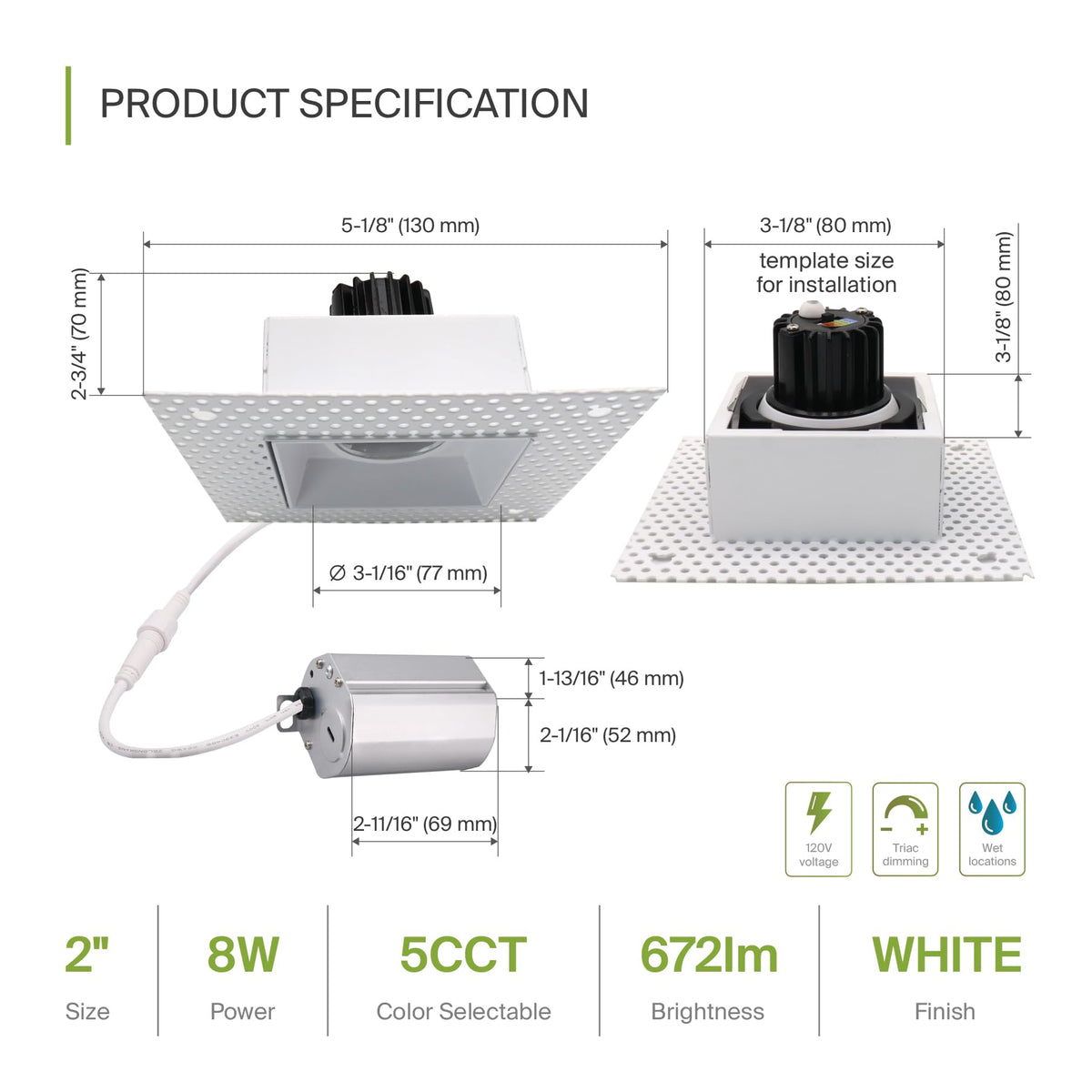 - **Compact Size**: At just 2 inches, the compact design allows for easy installation in tight spaces or on ceilings with lower clearance, ensuring maximum versatility without sacrificing brightness.