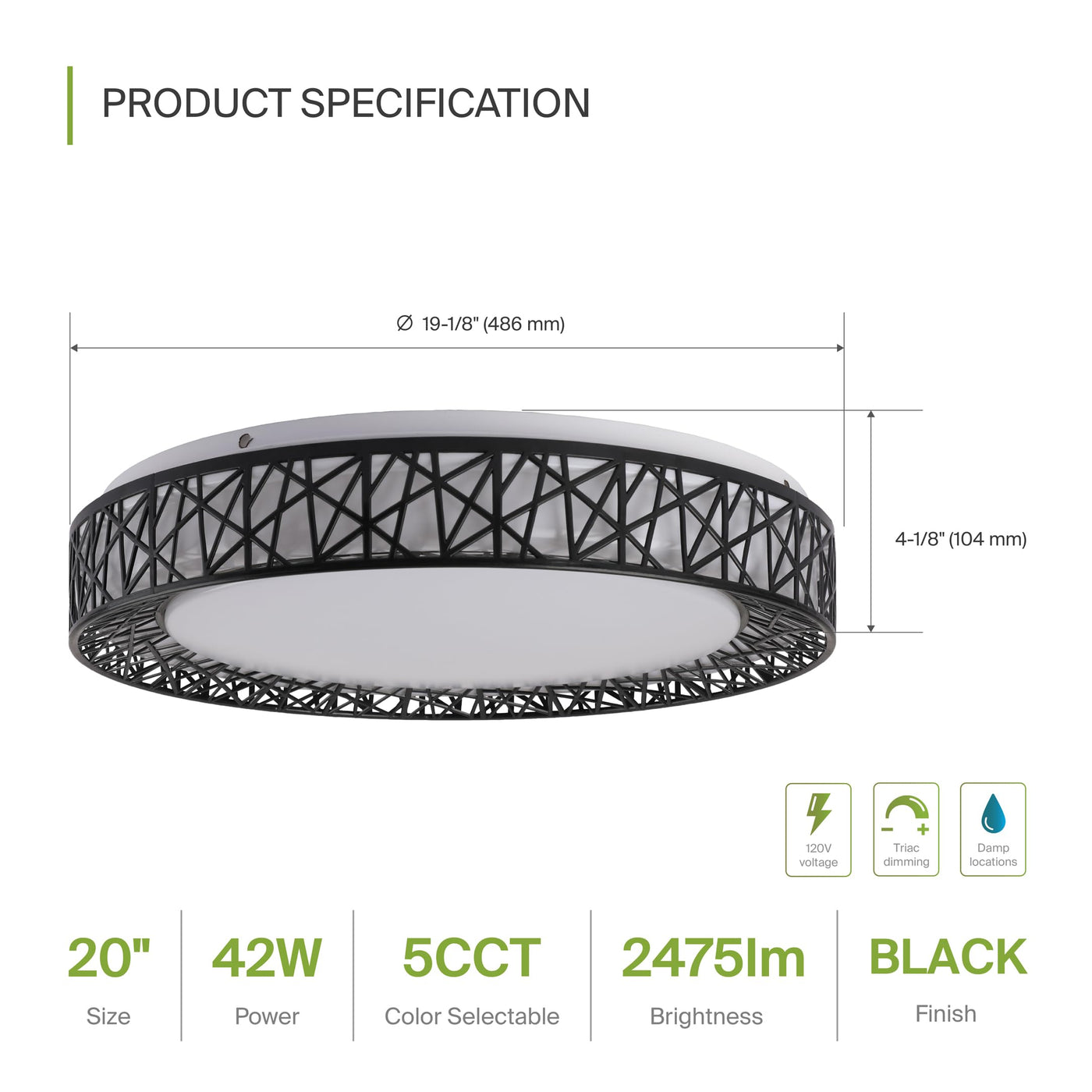 Asd 20 Inch Led Flush Mount Ceiling Light - Matte Black Modern Ceiling Light Fixture 42W 2475Lm, 2700-5000K Adjustable Dimmable