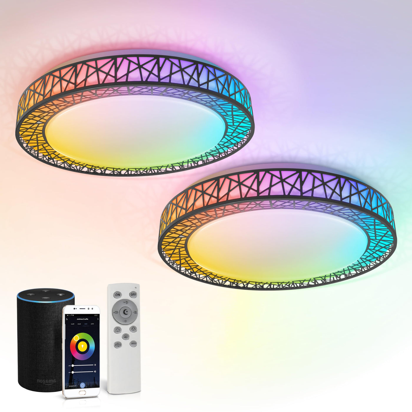 Asd 20 Inch Smart Rgbw Flush Mount Ceiling Light With Remote - Matte Black 42W 120V 2700-6500K Dimmable Ceiling Light Fixture, W