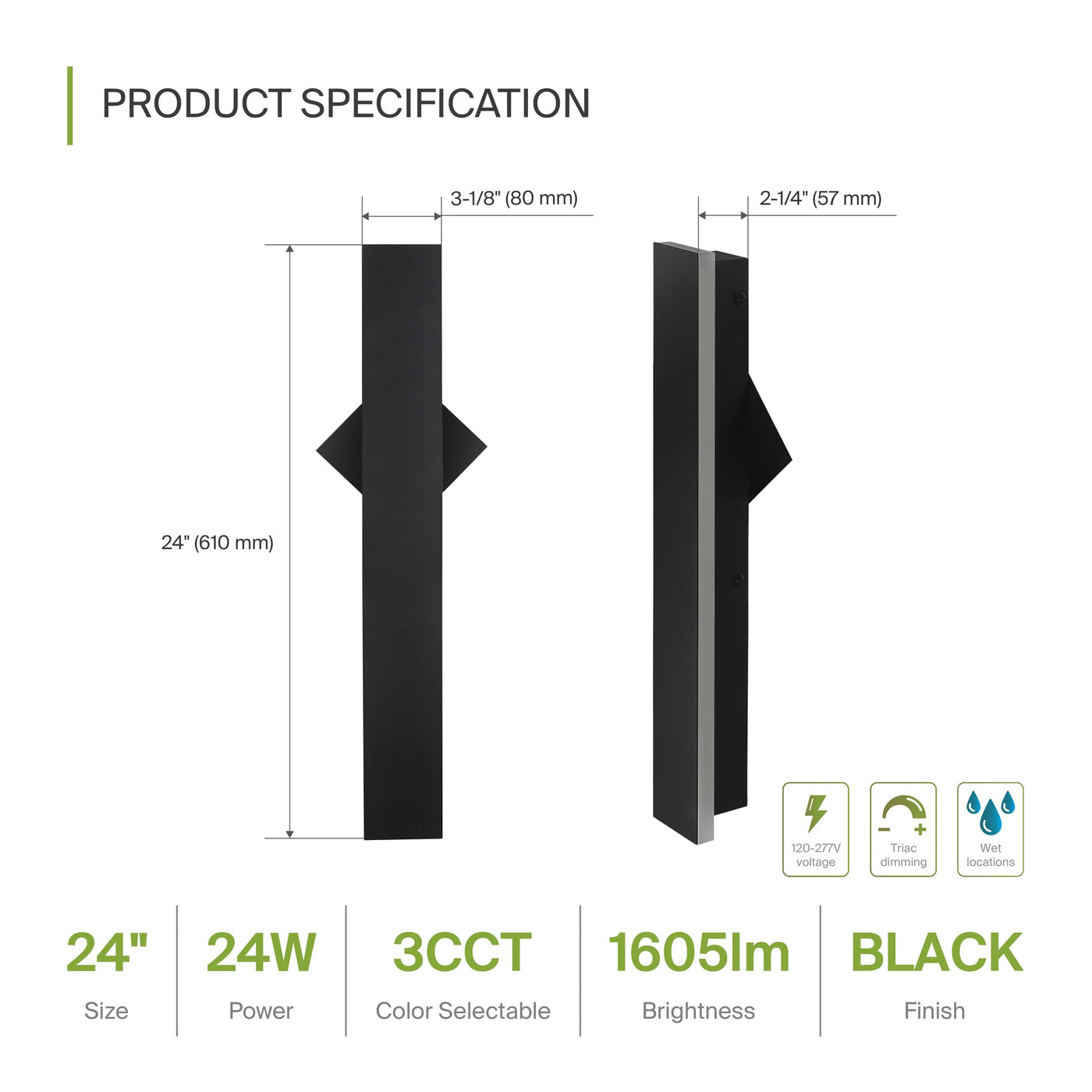 Asd 24 Inch Led Flush Mount Wall Light, 24W 1500Lm, Dimmable, Waterproof, Black,