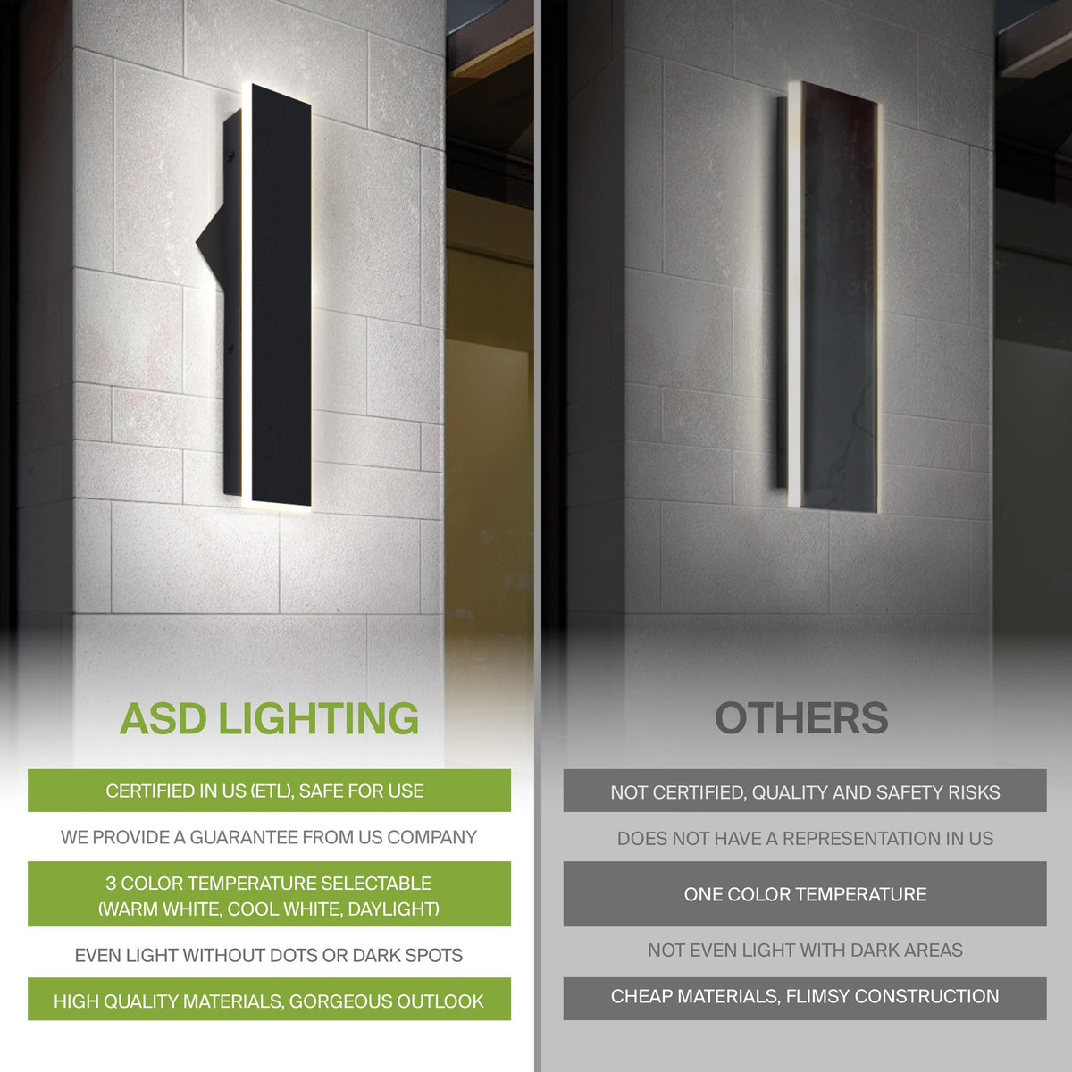 Q: Is the ASD LED wall light dimmable?A: Yes, this wall light is dimmable, allowing you to adjust the brightness and intensity from 10% to 100% with a compatible dimmer switch. This feature provides smooth triac dimming without flickering, offering versatility in lighting ambiance.