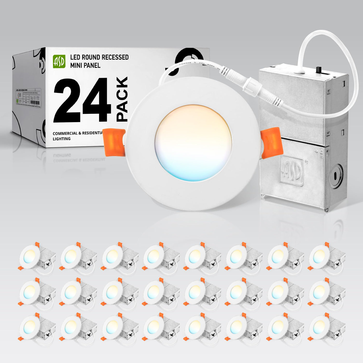 Asd 24 Pack 3 Inch Led Recessed Light 6W 5 Cct 2700K-5000K Cri90+ Ic Rated Ultra Thin Dimmable Ceiling Lights With J Box Canless Wafer Downlight Round Slim Panel Lighting Ul Energy Star White