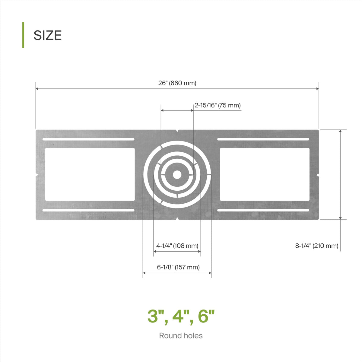 Asd 24 Pack New Construction Mounting Plate With Symmetric Round Hole - 3-4-6'' Flat Steel Rough-In Wafer Light Bracket, Led Rec
