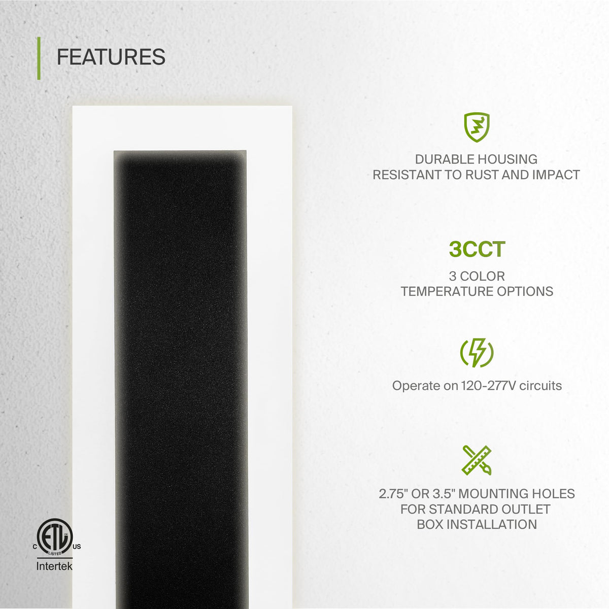 Q: What are the key features of the ASD LED 24 Inch Long Flush Mount Wall Light Fixture?A: The ASD LED 24 Inch Long Flush Mount Wall Light Fixture features a 24W integrated energy-efficient LED strip, delivering 2000 lumens of brightness. It includes a built-in 3 color temperature selectable switch allowing you to choose between 3000K, 4000K, and 5000K. It is dimmable, supporting brightness adjustments from 10-100% with compatible dimmer switches, and is designed for multi-voltage use, compatible with systems from 80 to 300 volts.
