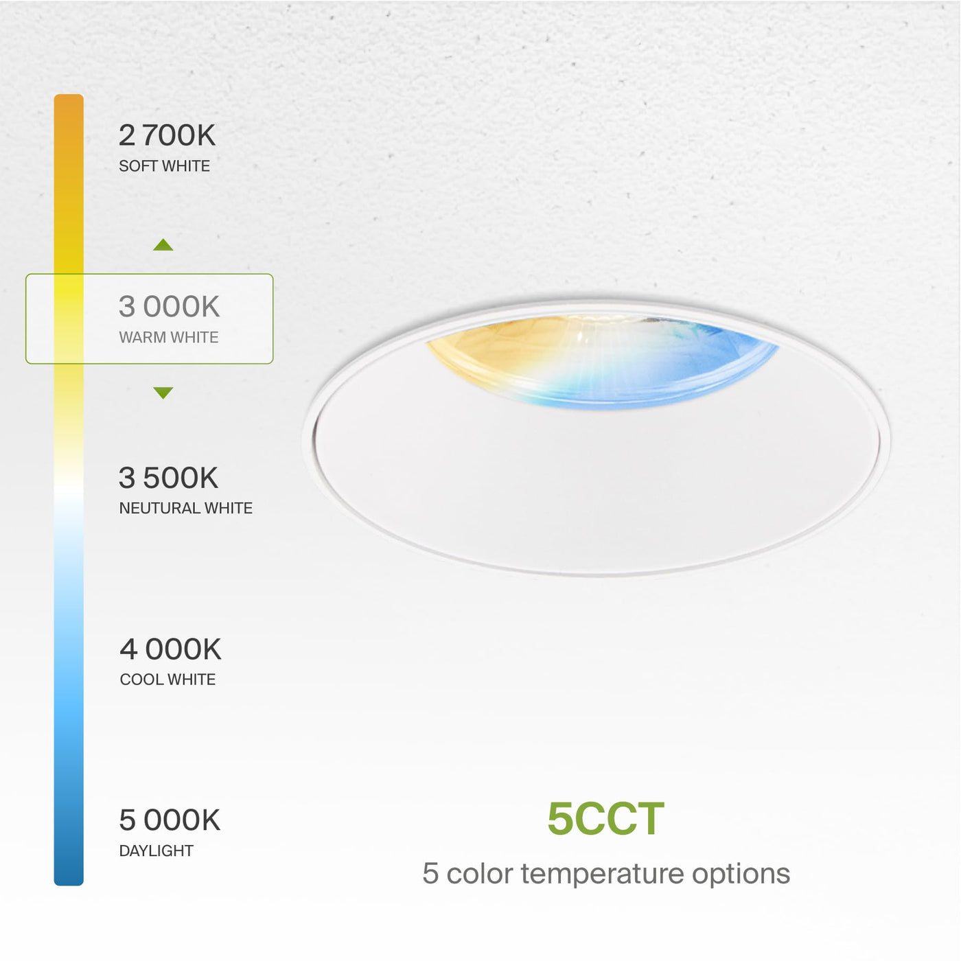Q: What is the color temperature range for the ASD Trimless 3 Inch LED Recessed Light?A: The ASD Trimless 3 Inch LED Recessed Light offers a color temperature range of 2700K to 5000K, allowing you to select from soft white, warm white, neutral white, cool white, and daylight options to suit your space.
