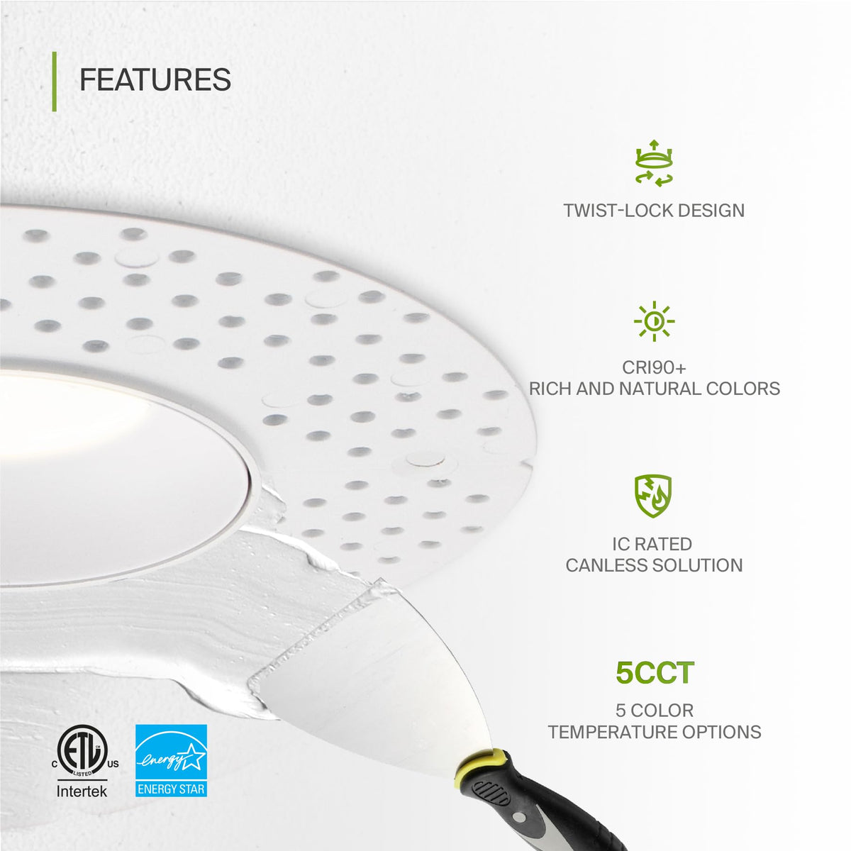 - **Sleek Trimless Design**: The ASD LED trimless recessed lighting features a twist-lock design and a round mud frame for a smooth, plastered finish, eliminating the need for bulky housings and ensuring a modern look.