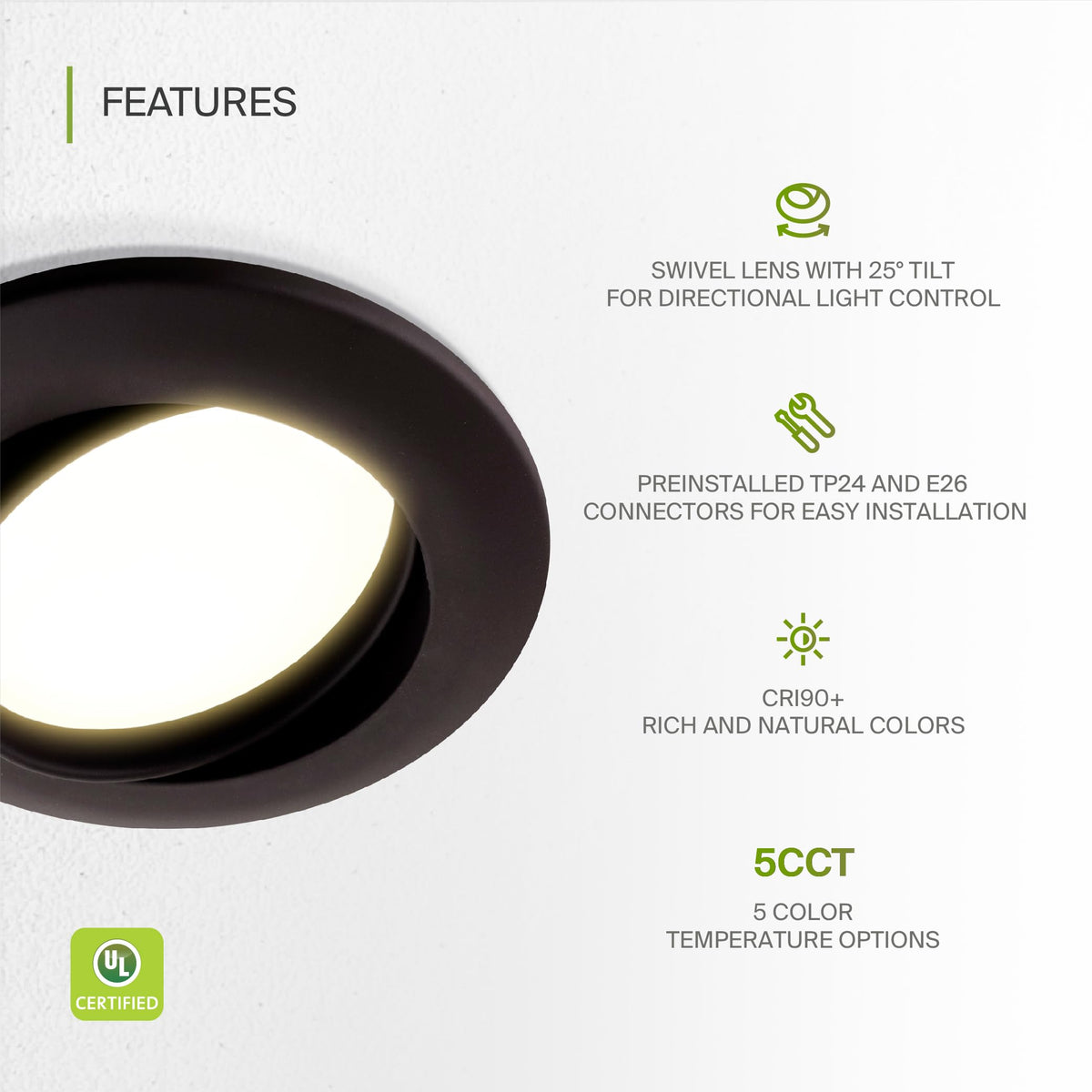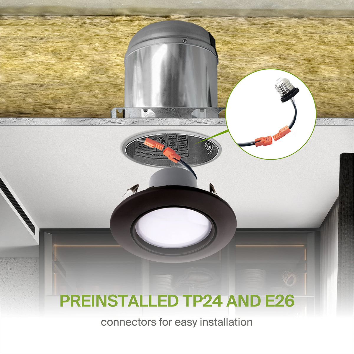 - **Easy Installation**: Comes with universal TP24 or E26 connectors and preinstalled spring clips for quick and hassle-free installation in most recessed lighting housings.