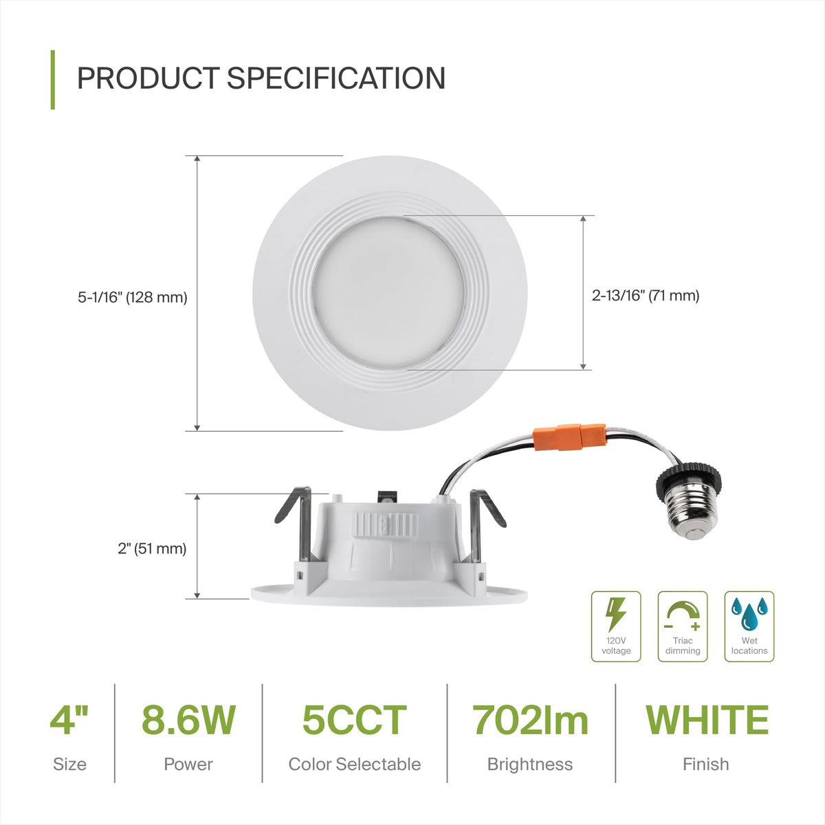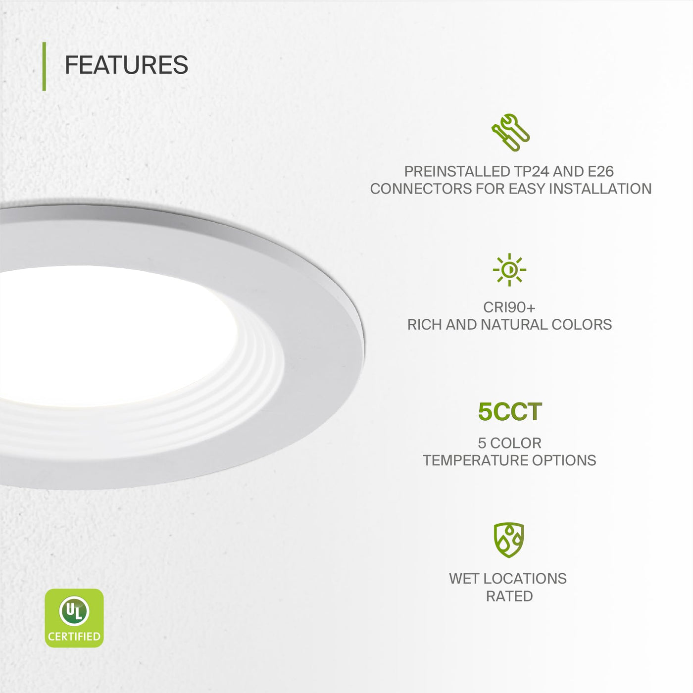 - **Easy Installation**: Designed for user convenience, the LED Round Retrofit Kit comes with universal TP24 or E26 connectors and preinstalled spring clips for quick and hassle-free installation in various settings, including new constructions and remodels.