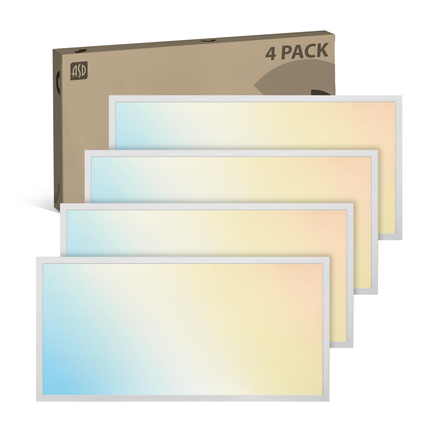 Q: What color temperatures are available for the ASD 4 Pack 2x4 LED Flat Panel Light?A: The ASD 4 Pack 2x4 LED Flat Panel Light offers three selectable color temperatures: 3500K Neutral White, 4000K Cool White, and 5000K Daylight, allowing you to choose the best lighting for your space.