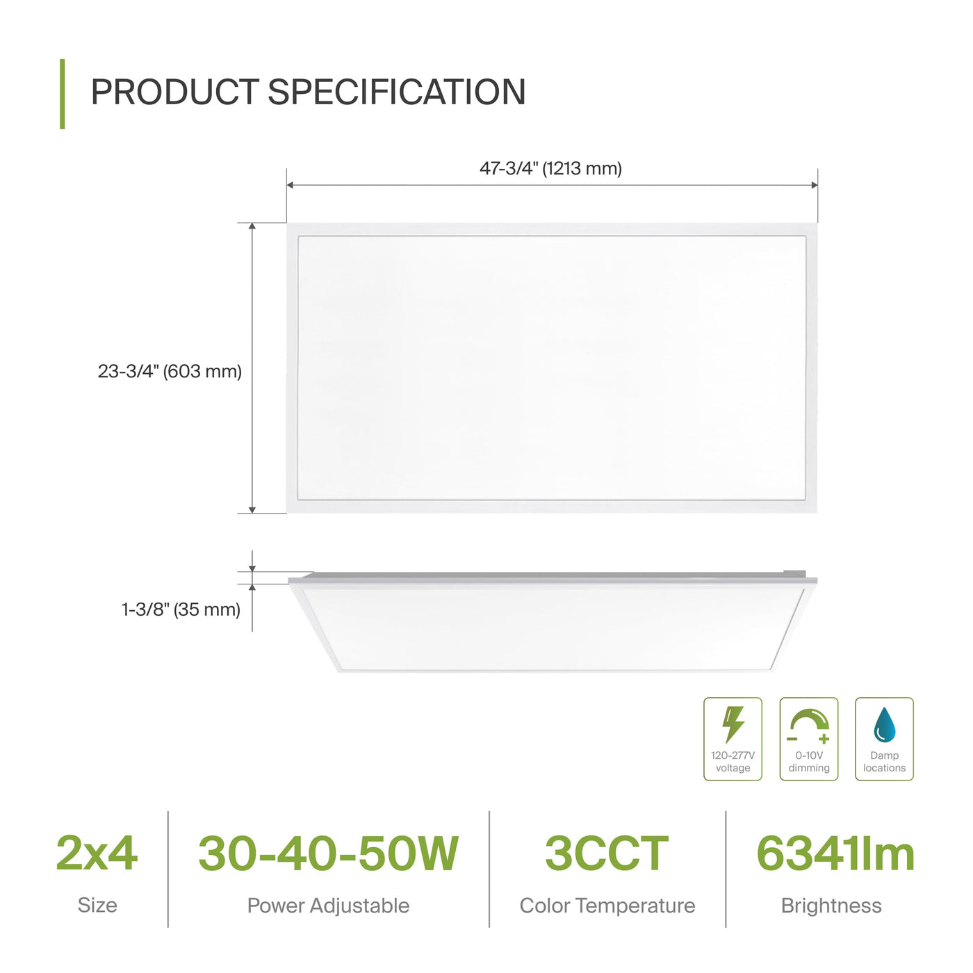 Asd 4 Pack 2X4 Led Flat Panel Light - 30/40/50W Ul Dlc | 6341Lm 3500K 4000K 5000K Selectable Dimmable 2X4 Led Drop Ceiling Light