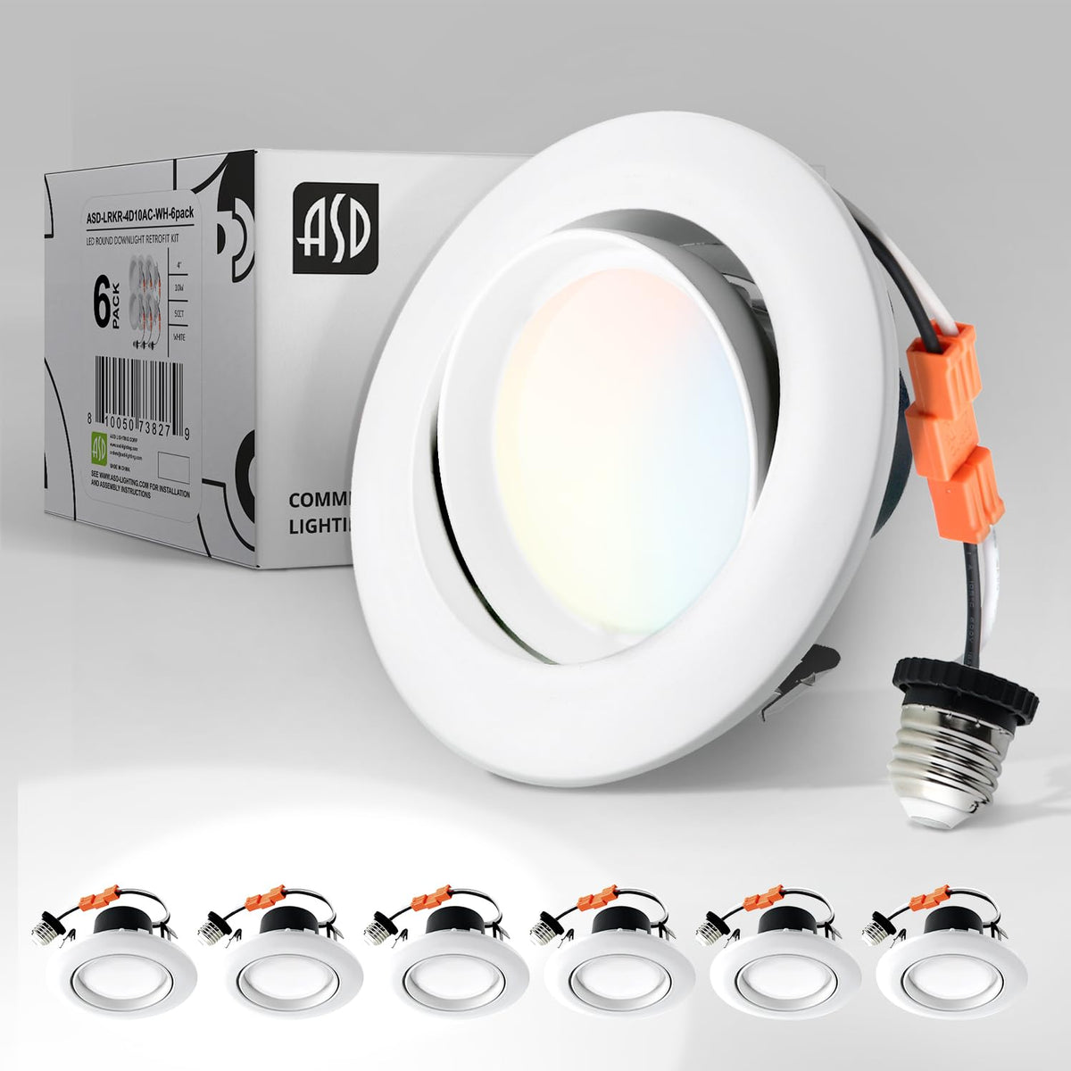 Q: How do I install the ASD Gimbal LED Downlight?A: Installation is straightforward with the provided universal TP24 or E26 connectors. The fixture comes with preinstalled spring clips for quick and easy setup, making it suitable for most new construction and remodeling projects.