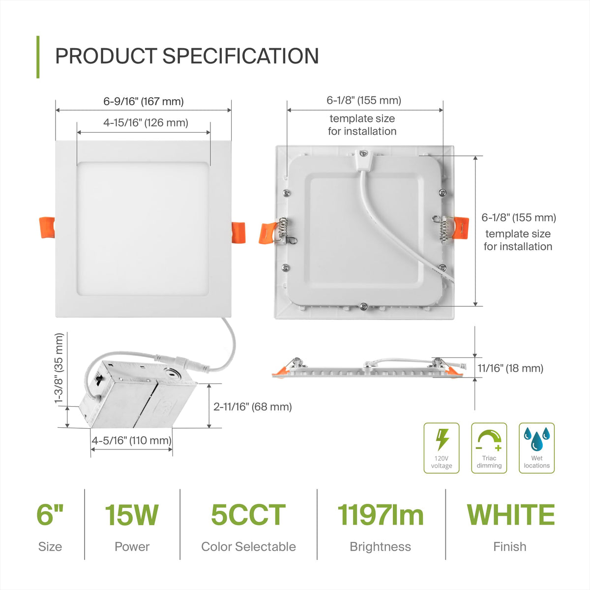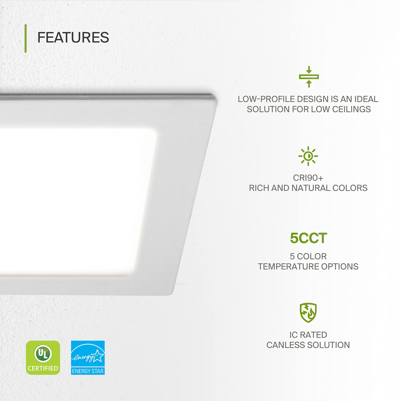 - ?? **Effortless Installation**: Designed for quick and easy setup, this canless LED square ceiling light is IC rated and does not require any can or housing. With a template size of 6-1/8" and comprehensive installation instructions, upgrading your lighting has never been easier.