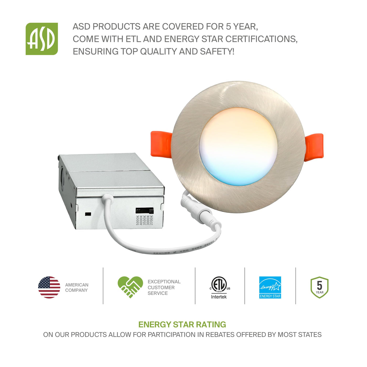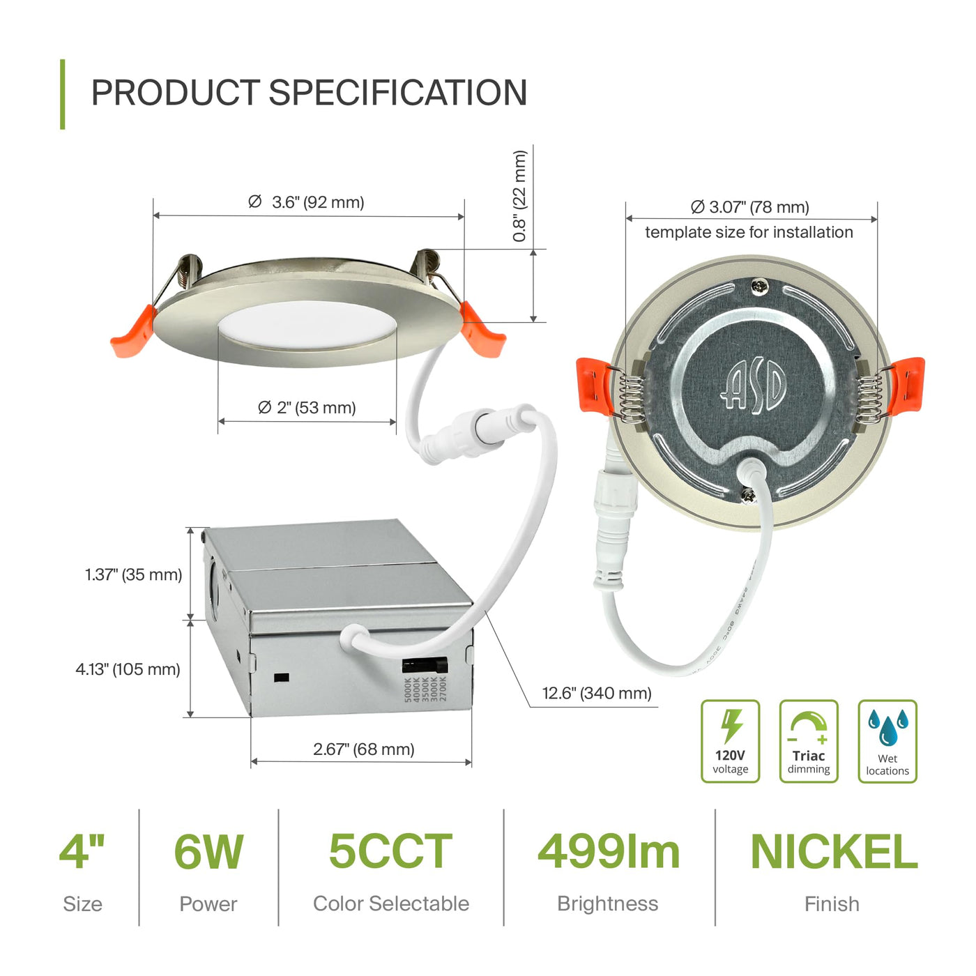 Asd 6 Pack 3 Inch Led Recessed Light 6W 5 Cct 2700K-5000K Cri90+ Ic Rated Ultra Thin Dimmable Ceiling Lights With J Box Canless Wafer Downlight Round Slim Panel Lighting Energy Star Etl Nickel