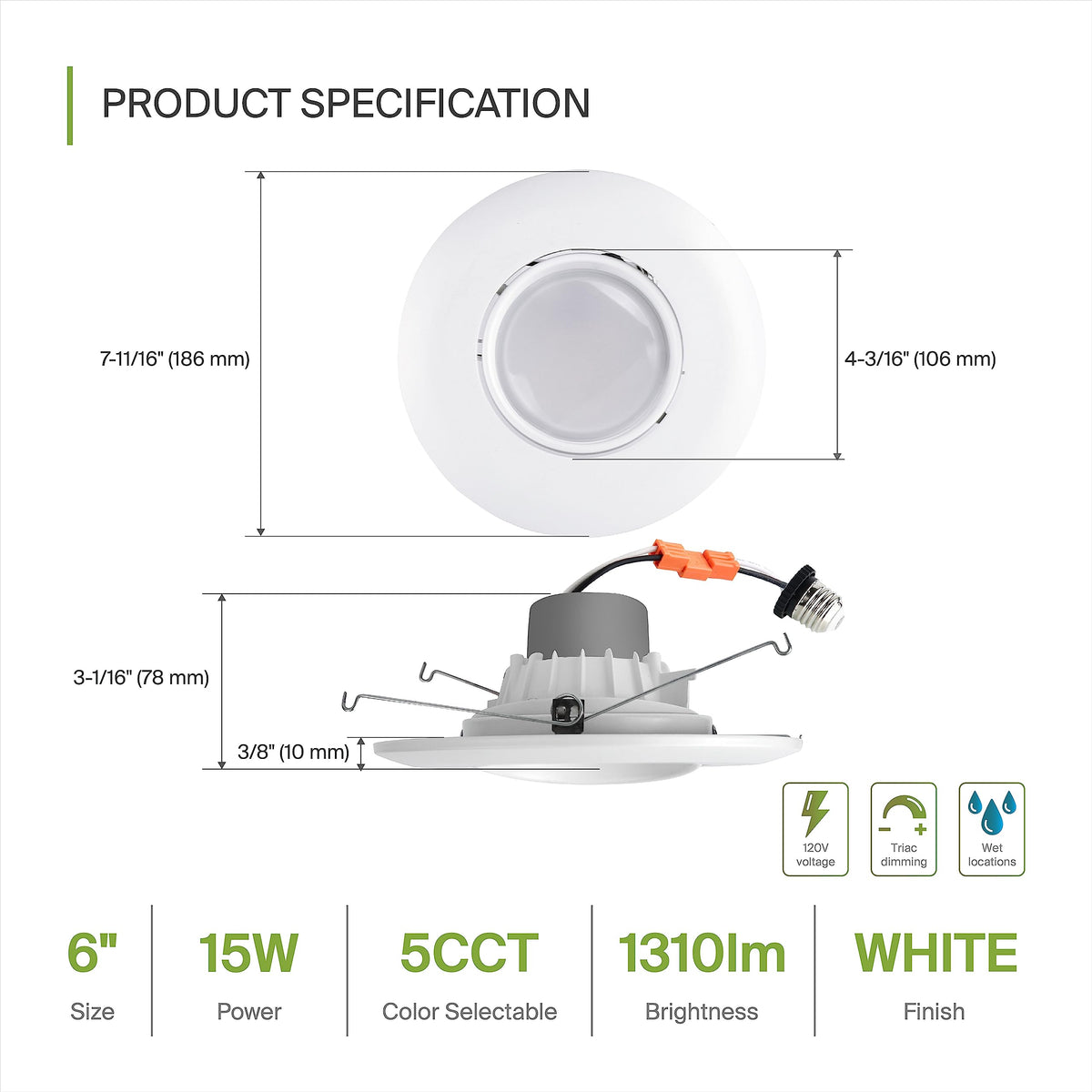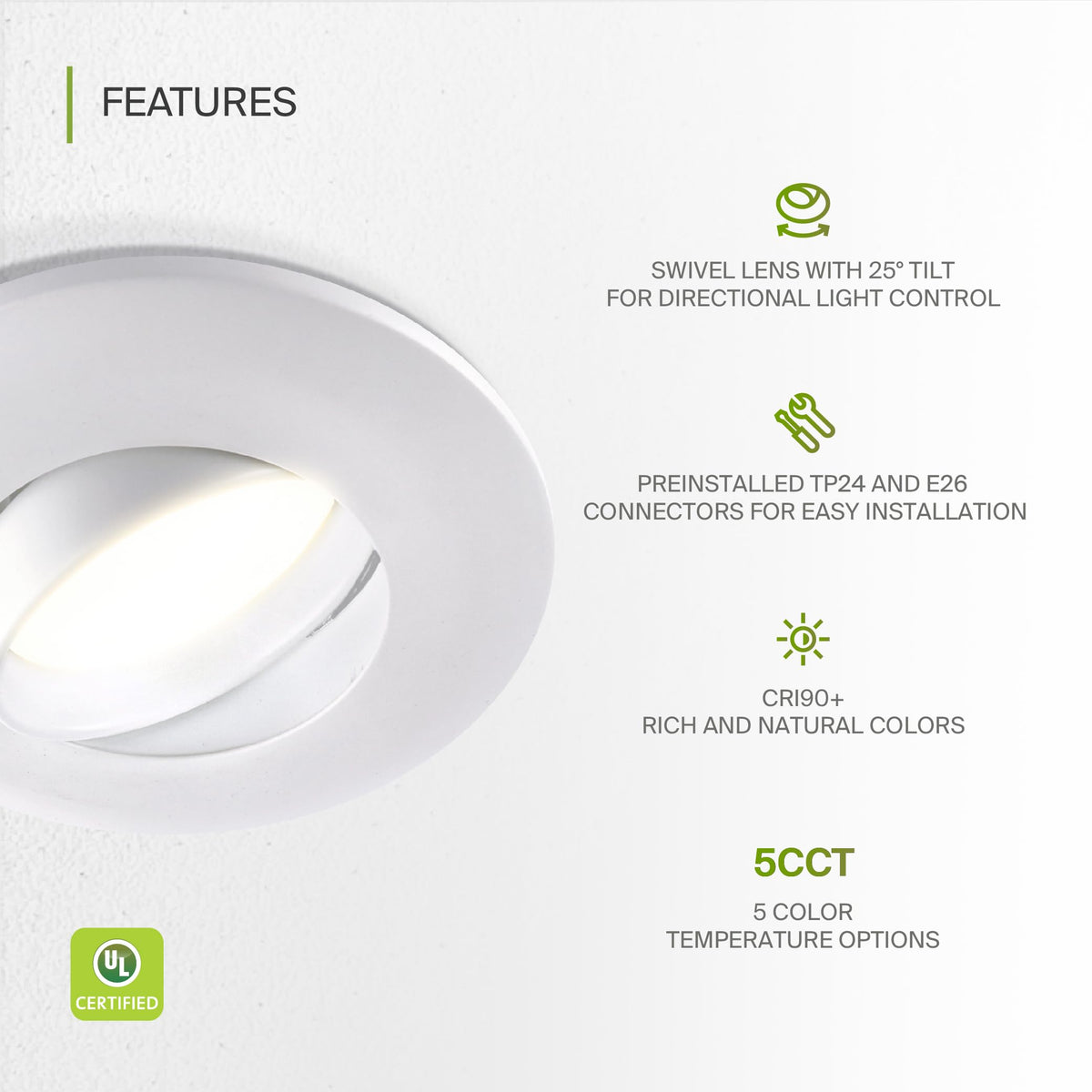 - **Flexible Design**: The LED Downlight Retrofit Kit Gimbal allows for 355° horizontal rotation and up to 25° vertical rotation, providing targeted illumination where you need it most. Ideal for family rooms, bedrooms, hallways, and more.