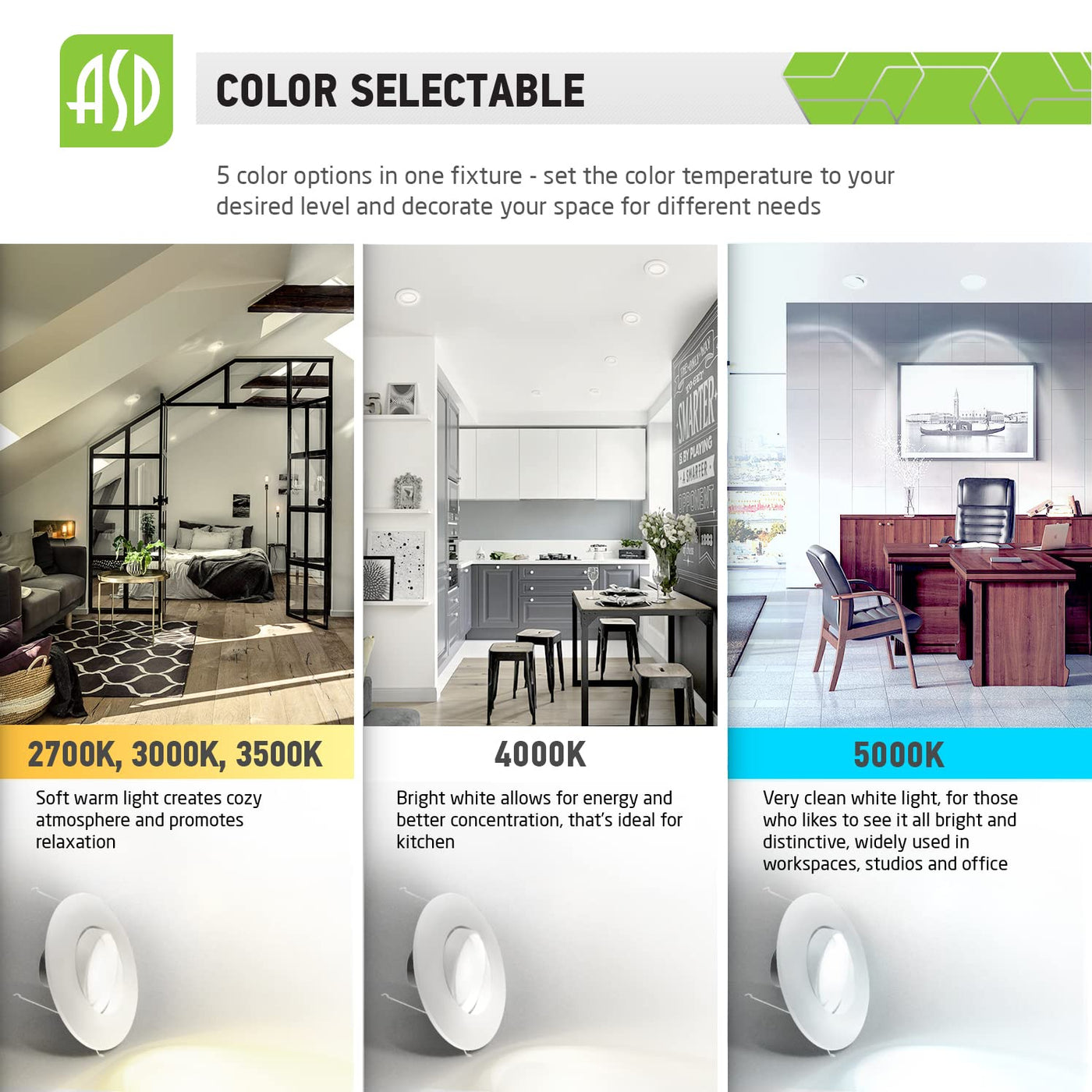 Asd 6 Pack Adjustable 5Cct 15W Led Can Lights, Dimmable, 1200 Lm, Energy