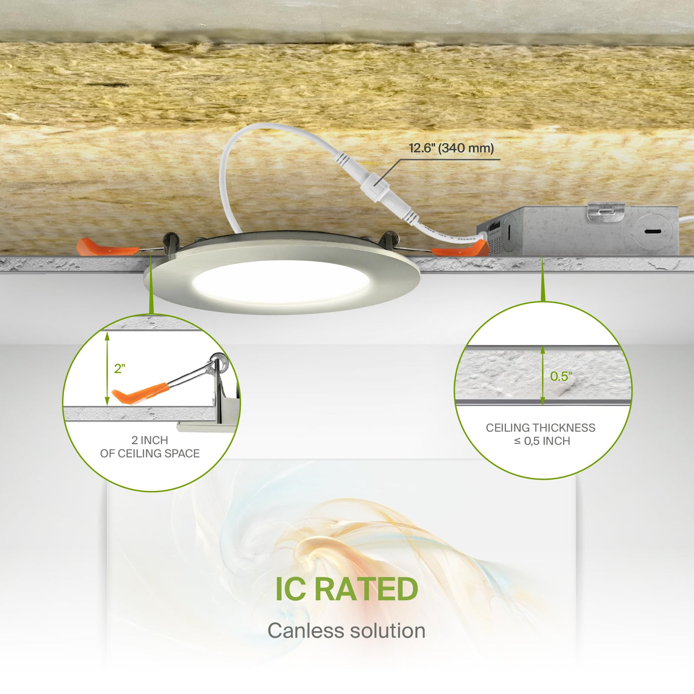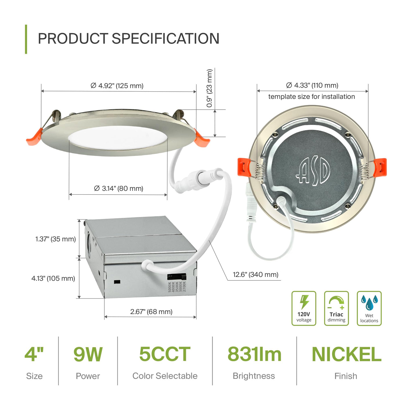 Asd 6 Pack Led Recessed Lighting 4 Inch 9W 5 Cct 2700K-5000K Cri90+ Ic Rated Ultra Thin Dimmable Ceiling Lights With J Box Canless Wafer Downlight Round Slim Panel Light Energy Star Etl Nickel