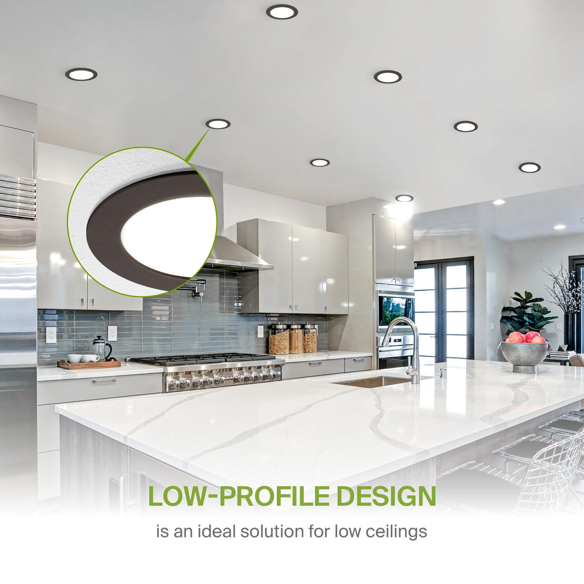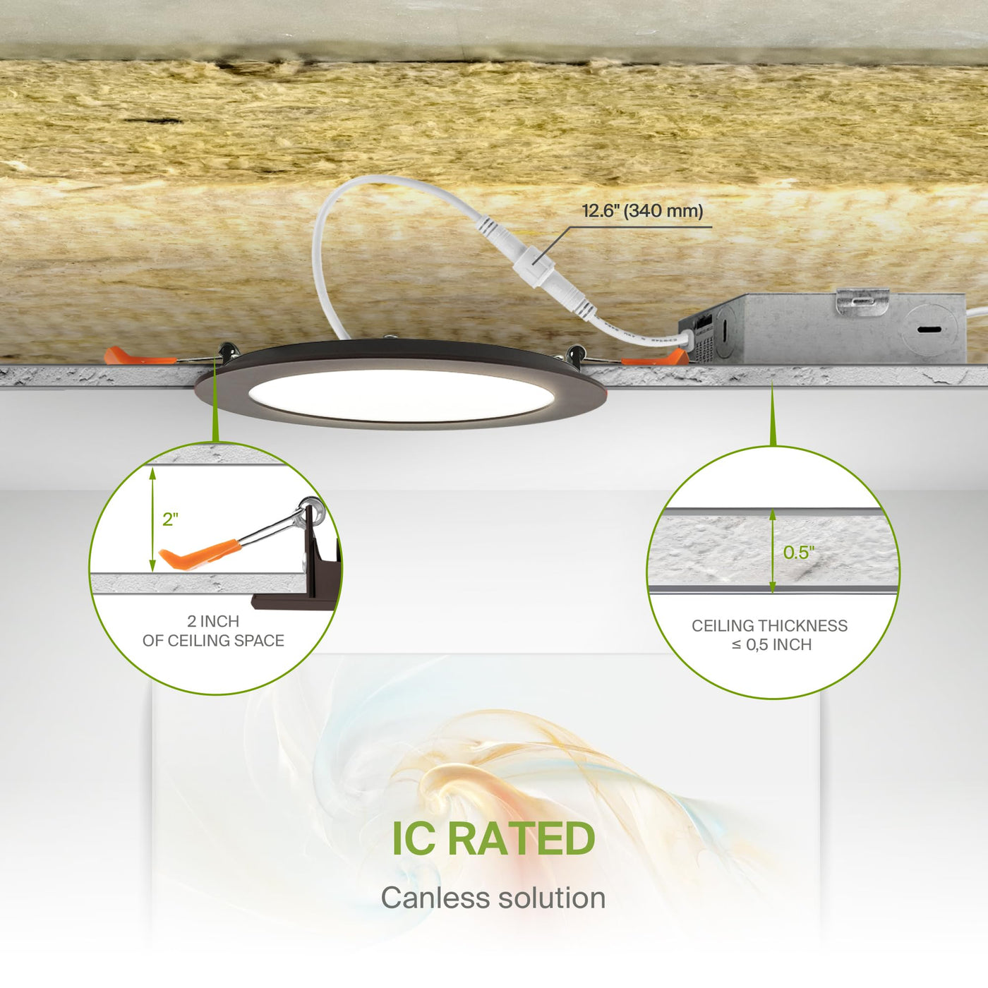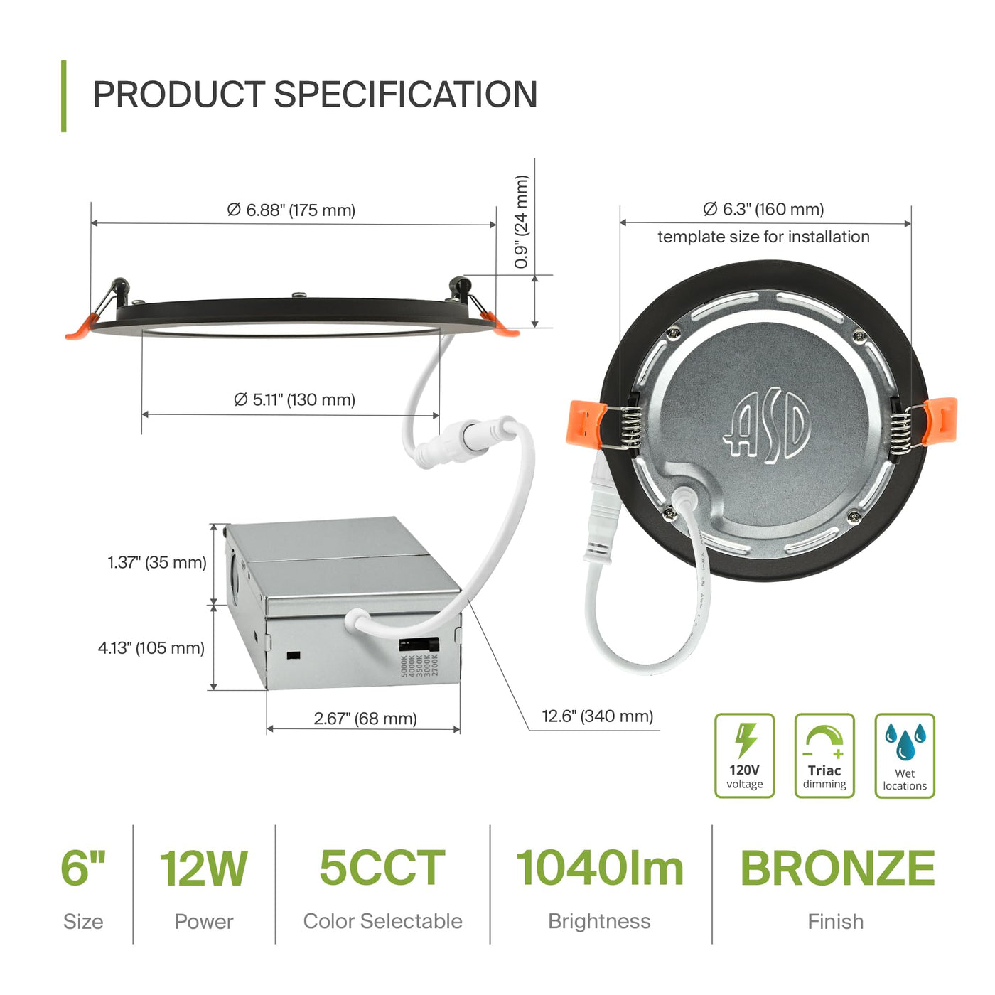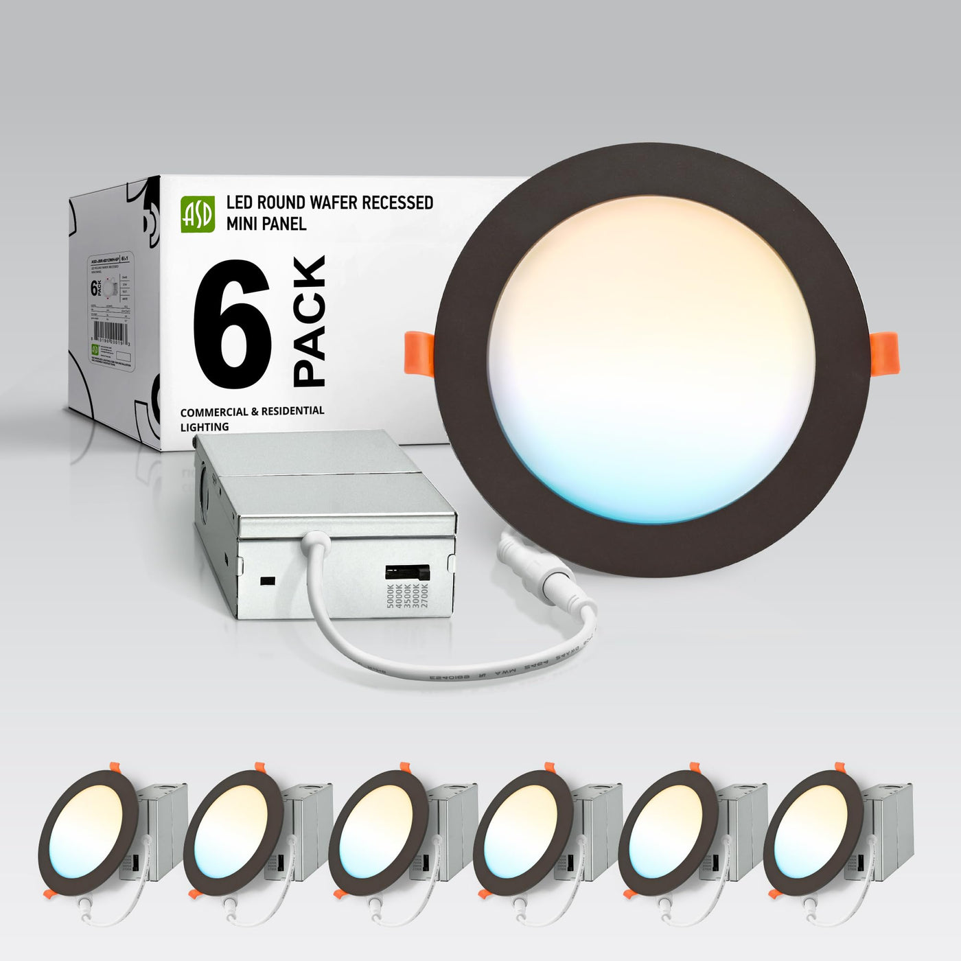 Asd 6 Pack Led Recessed Lighting 6 Inch 12W 5 Cct 2700K-5000K Cri90+ Ic Rated Ultra Thin Dimmable Ceiling Lights With J Box Canless Wafer Downlight Round Slim Panel Light Energy Star Etl Bronze