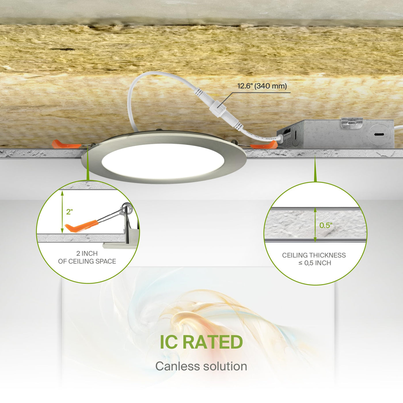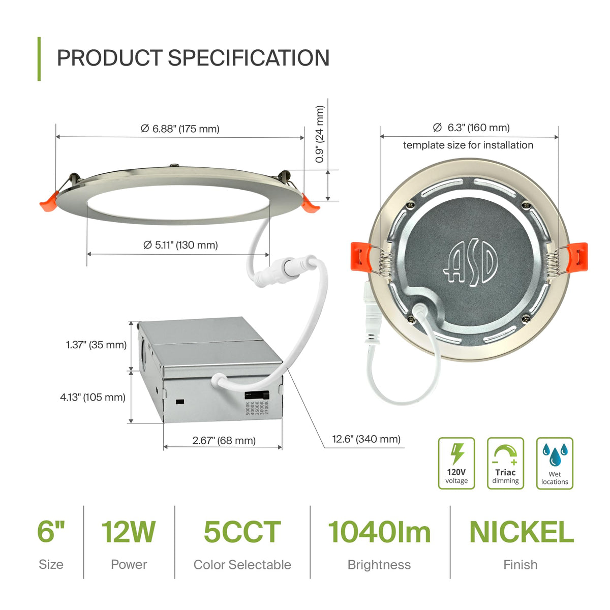 Asd 6 Pack Led Recessed Lighting 6 Inch 12W 5 Cct 2700K-5000K Cri90+ Ic Rated Ultra Thin Dimmable Ceiling Lights With J Box Canless Wafer Downlight Round Slim Panel Light Energy Star Etl Nickel