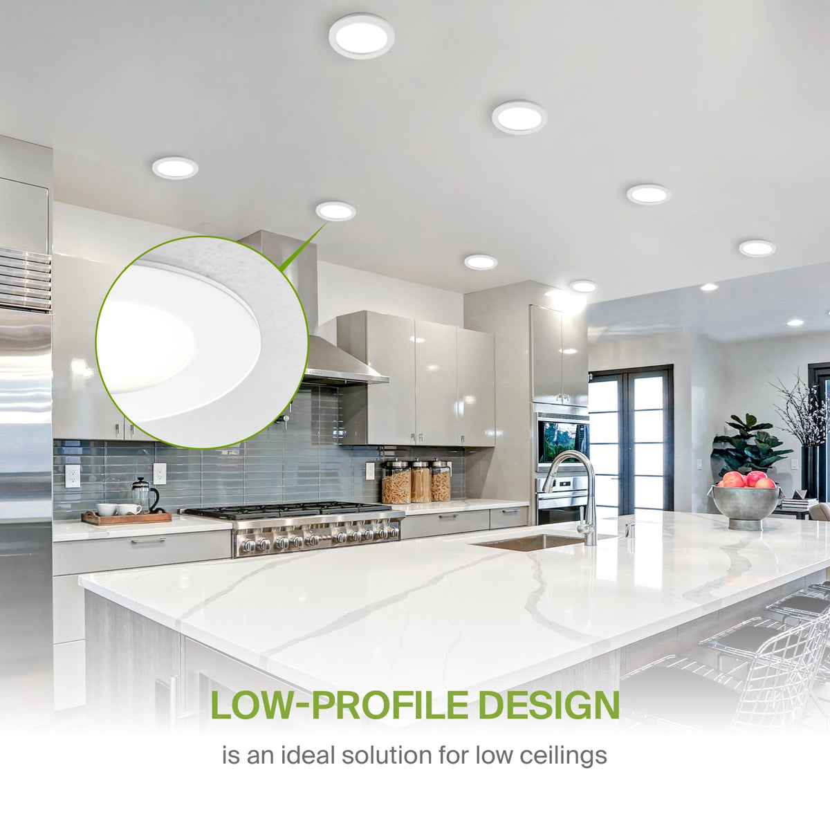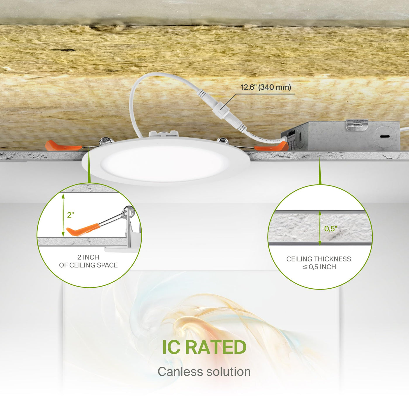 Asd 6 Pack Led Recessed Lighting 6 Inch 12W 5 Cct 2700K-5000K Cri90+ Ic Rated Ultra Thin Dimmable Ceiling Lights With J Box Canless Wafer Downlight Round Slim Panel Light Energy Star Etl White