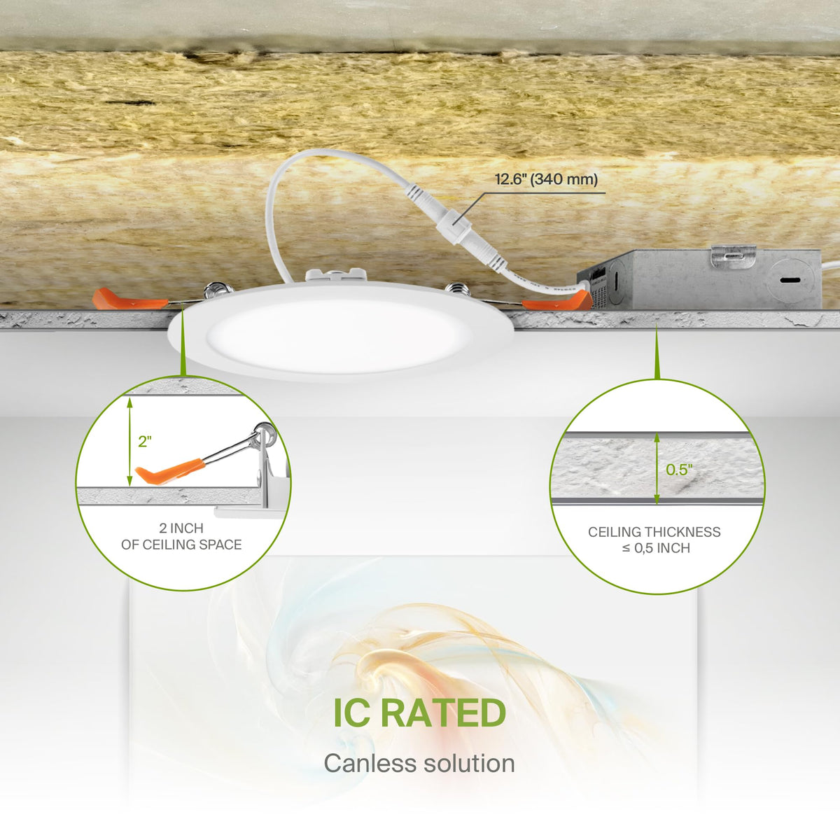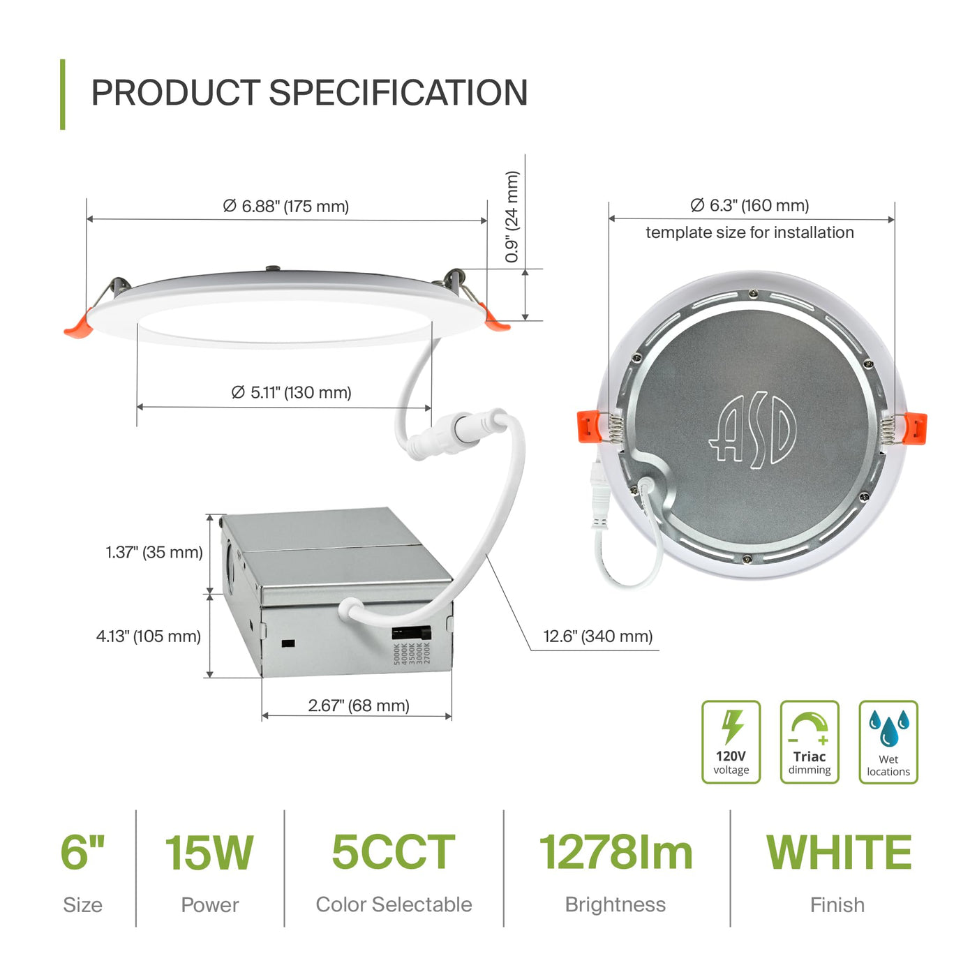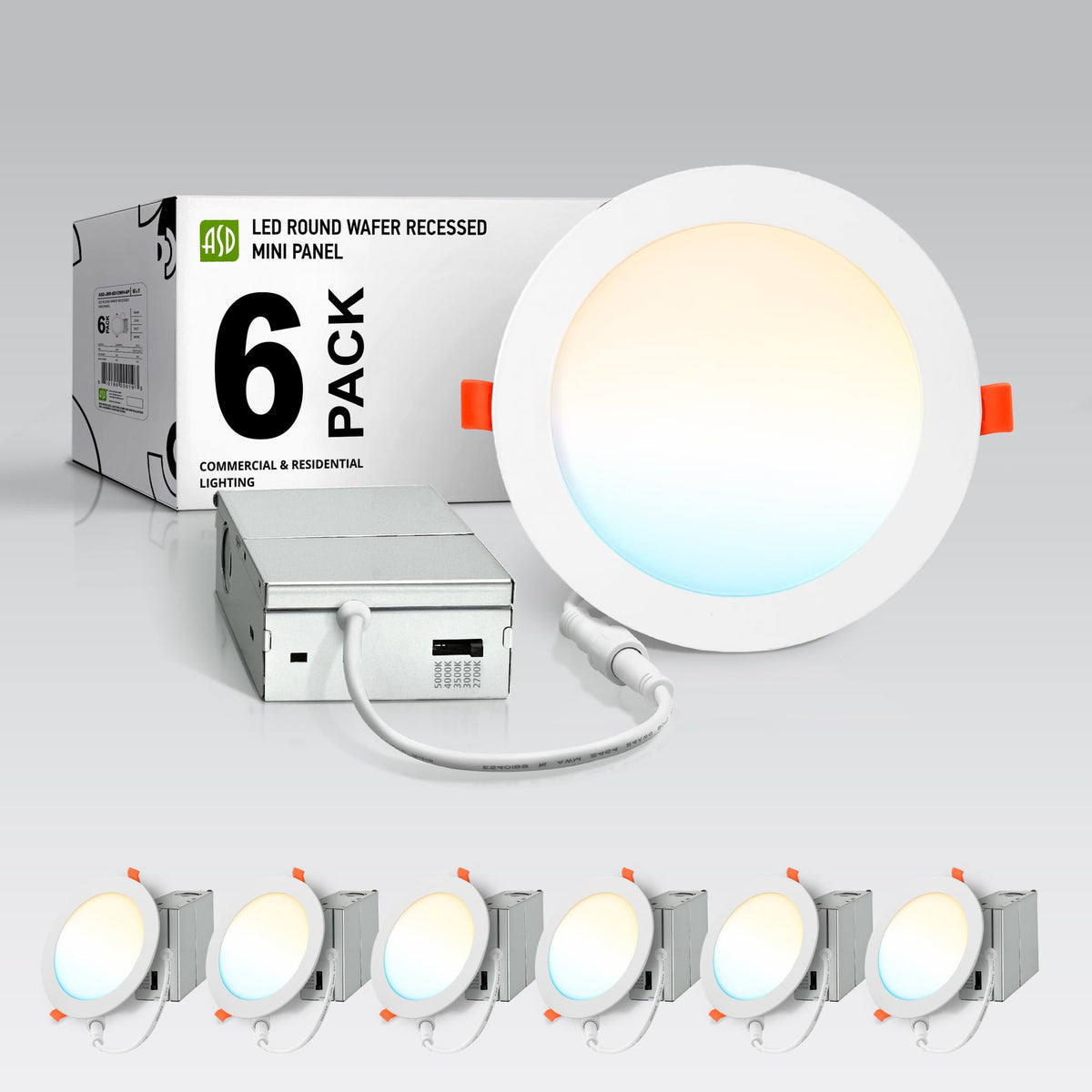 Asd 6 Pack Led Recessed Lighting 6 Inch 15W 5 Cct 2700K-5000K Cri90+ Ic Rated Ultra Thin Dimmable Ceiling Lights With J Box Canless Wafer Downlight Round Slim Panel Light Energy Star Etl White