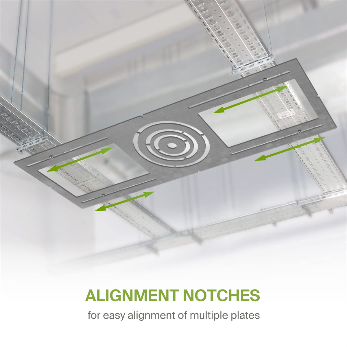 Q: Does the mounting plate include any alignment features?A: Yes, the ASD Mounting Plate features alignment notches that help you to align multiple plates easily, ensuring a precise and professional installation.