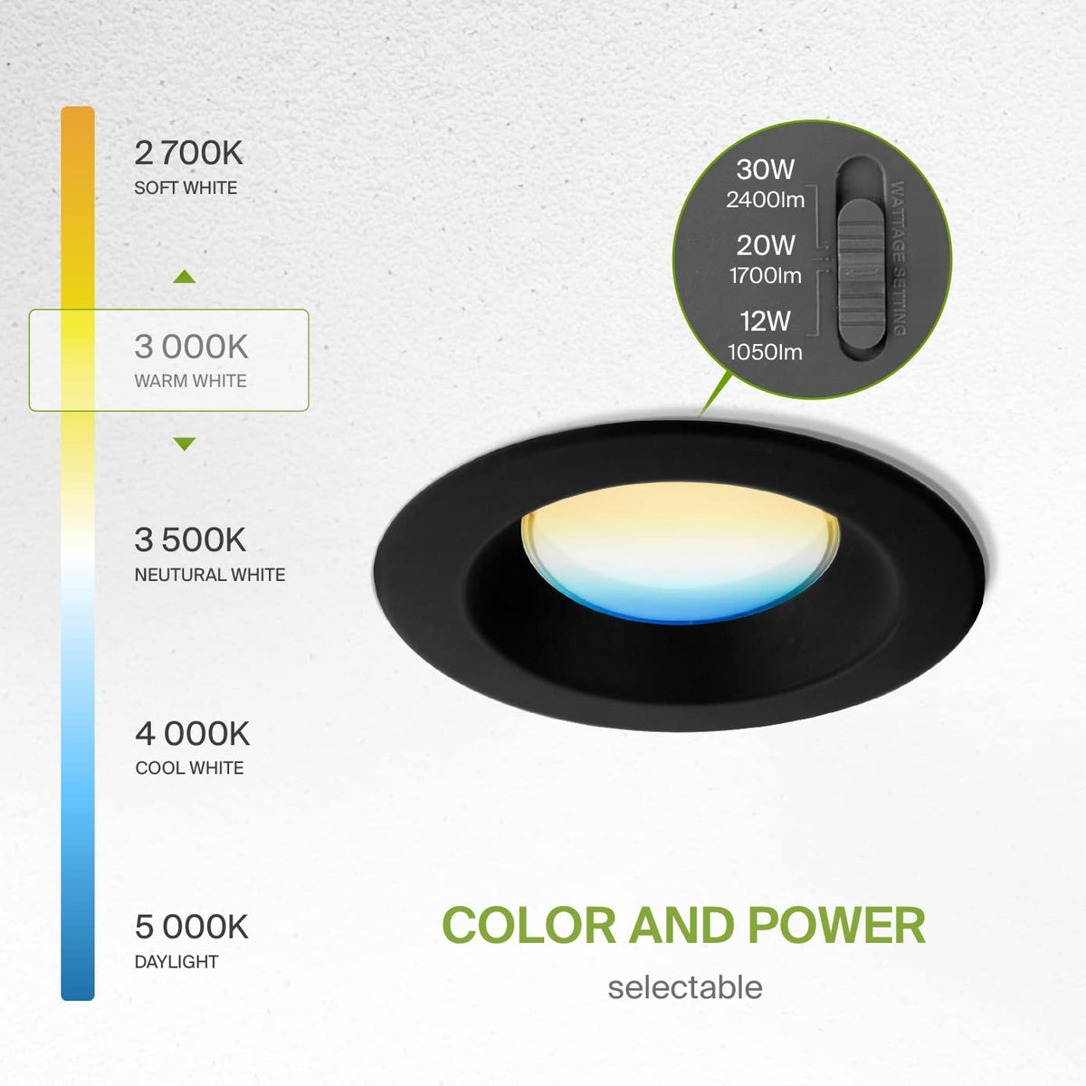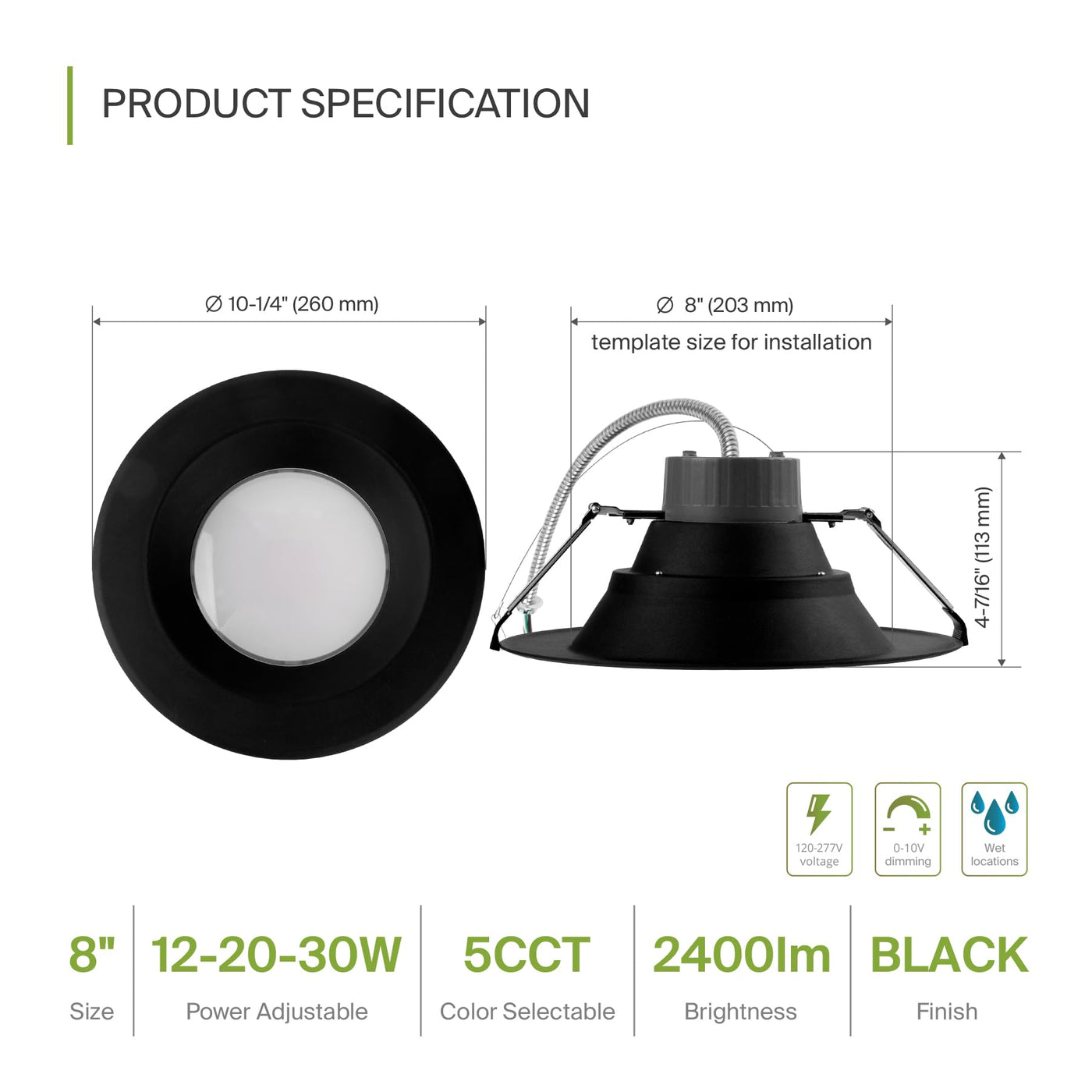 Asd 8 Inch Canless Led Downlight, 12/20/30W, Dimmable, 5 Color Temps,