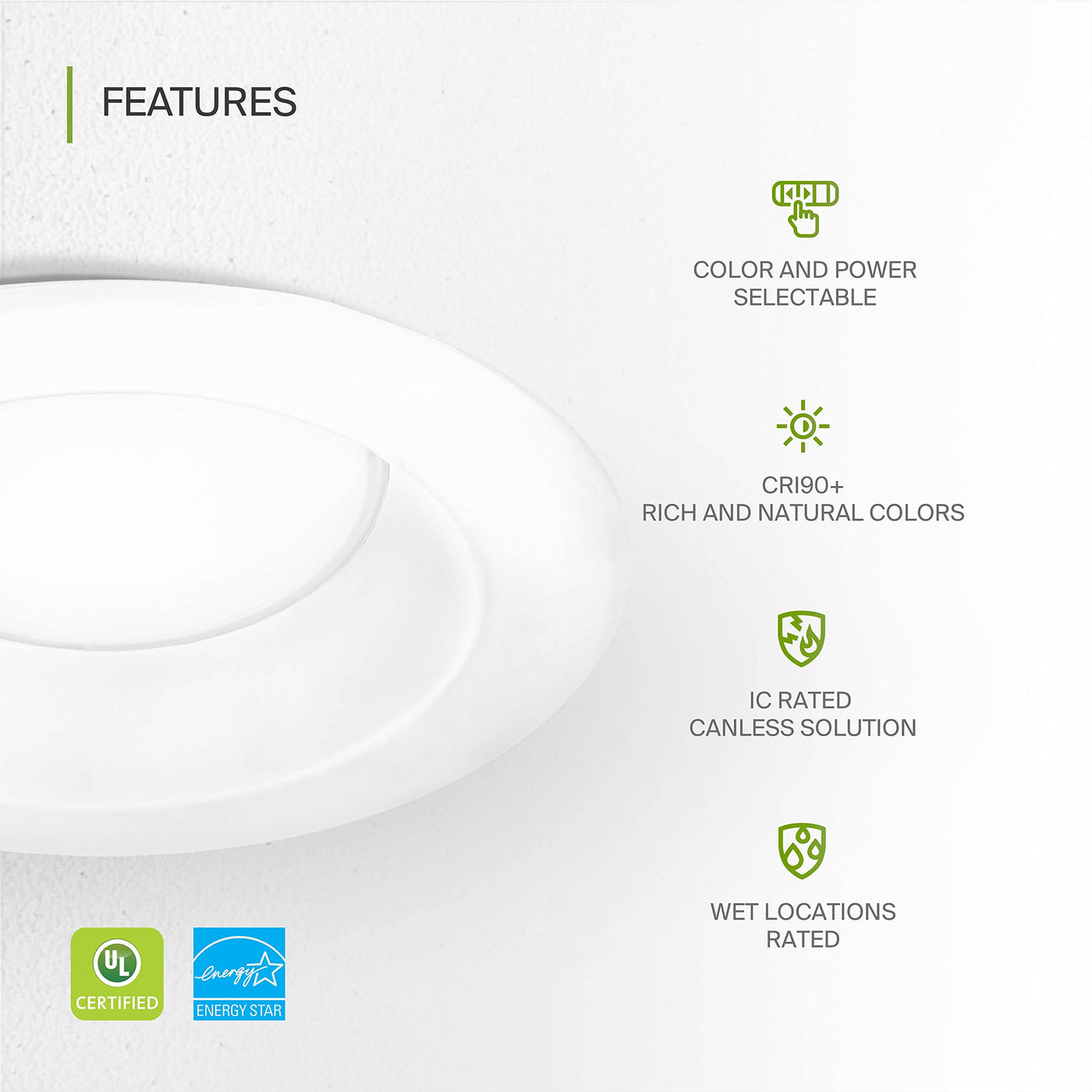 - **Easy Installation**: This canless recessed lighting is IC rated, meaning no housing is required for installation. The included wiring and spring-loaded clips ensure a snug fit, while the safety cable provides added security during setup. The template size for installation is 8 inches (203 mm).