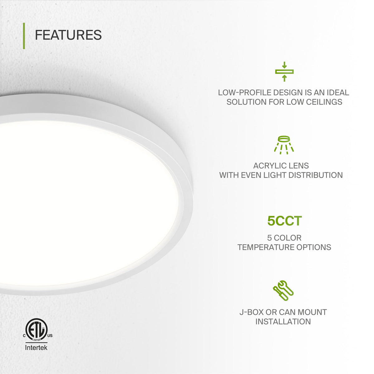 Tunable Light: Features 5 selectable color temperatures (2700K, 3000K, 4000K, 5000K, and 6000K) to customize your lighting ambiance.