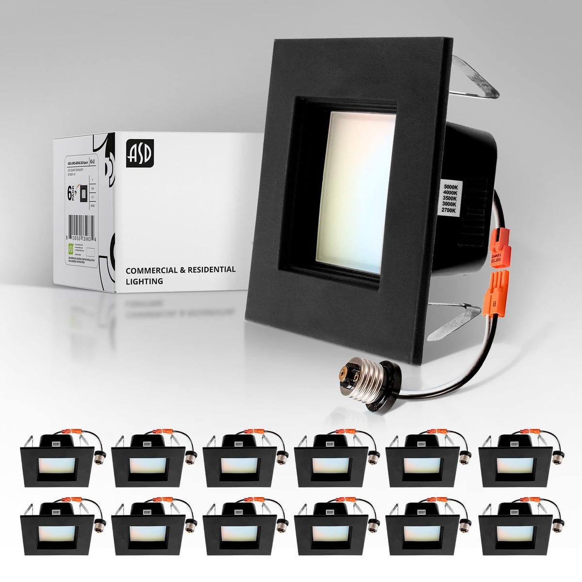 Asd Black 4 Inch Recessed Lighting Led Square Retrofit Kit 8.6W 709Lm Color Selectable 5 Cct 2700K/3000K/3500K/4000K/5000K Adjus