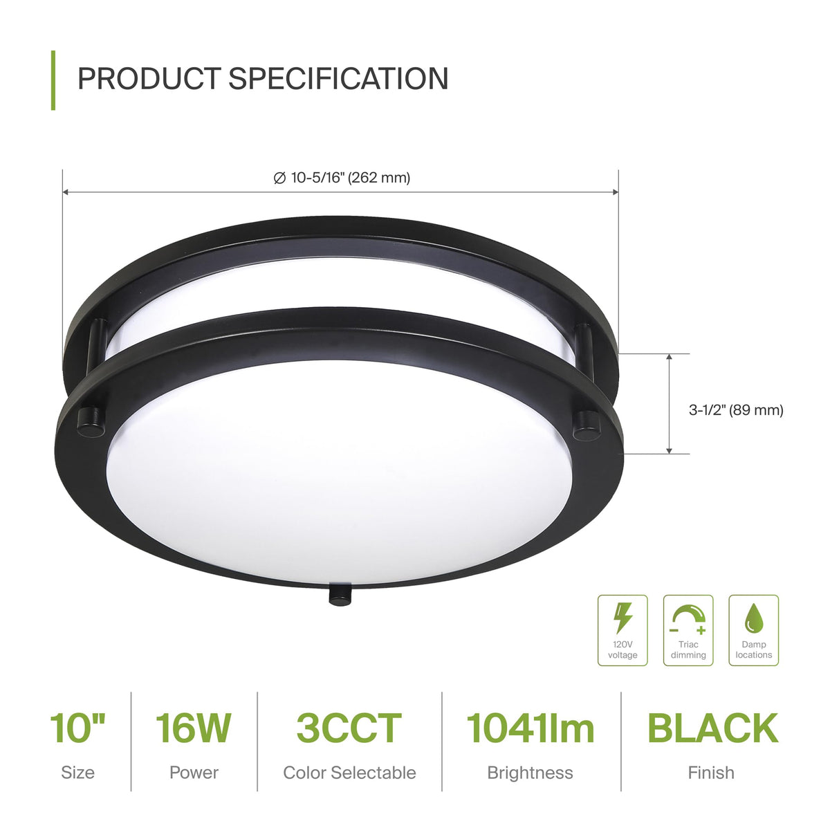 Asd Led 10 Inch Round Flush Mount Light Fixture | 16W 1050Lm 3000K-5000K 120V | 3Cct, Dimmable, Energy Star, Etl Listed | Close