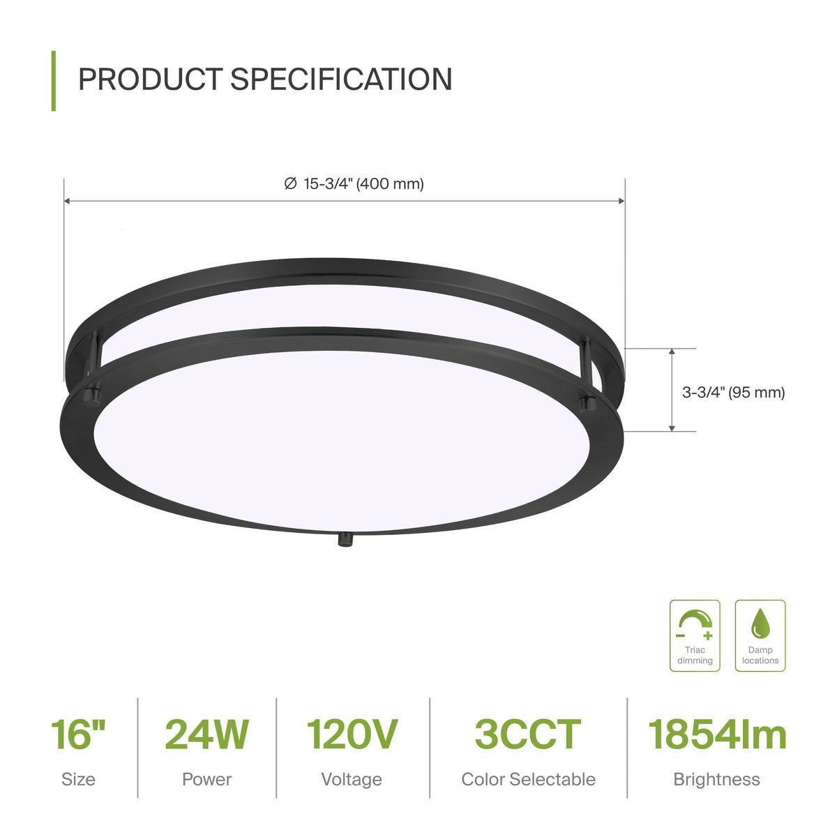Asd Led 16 Inch Round Flush Mount Light Fixture | 24W 1900Lm 3000K-5000K 120V | 3Cct, Dimmable, Energy Star, Etl Listed | Close