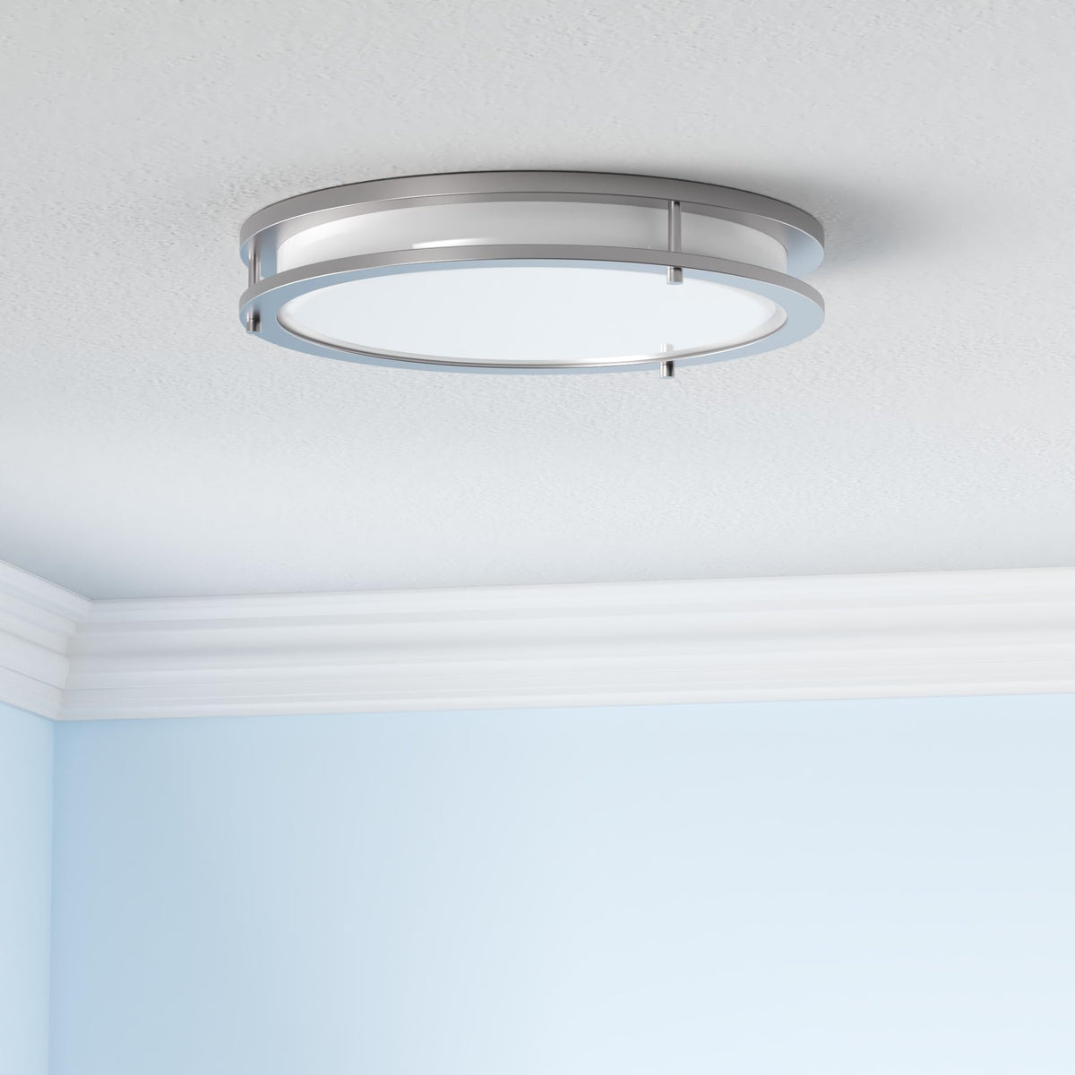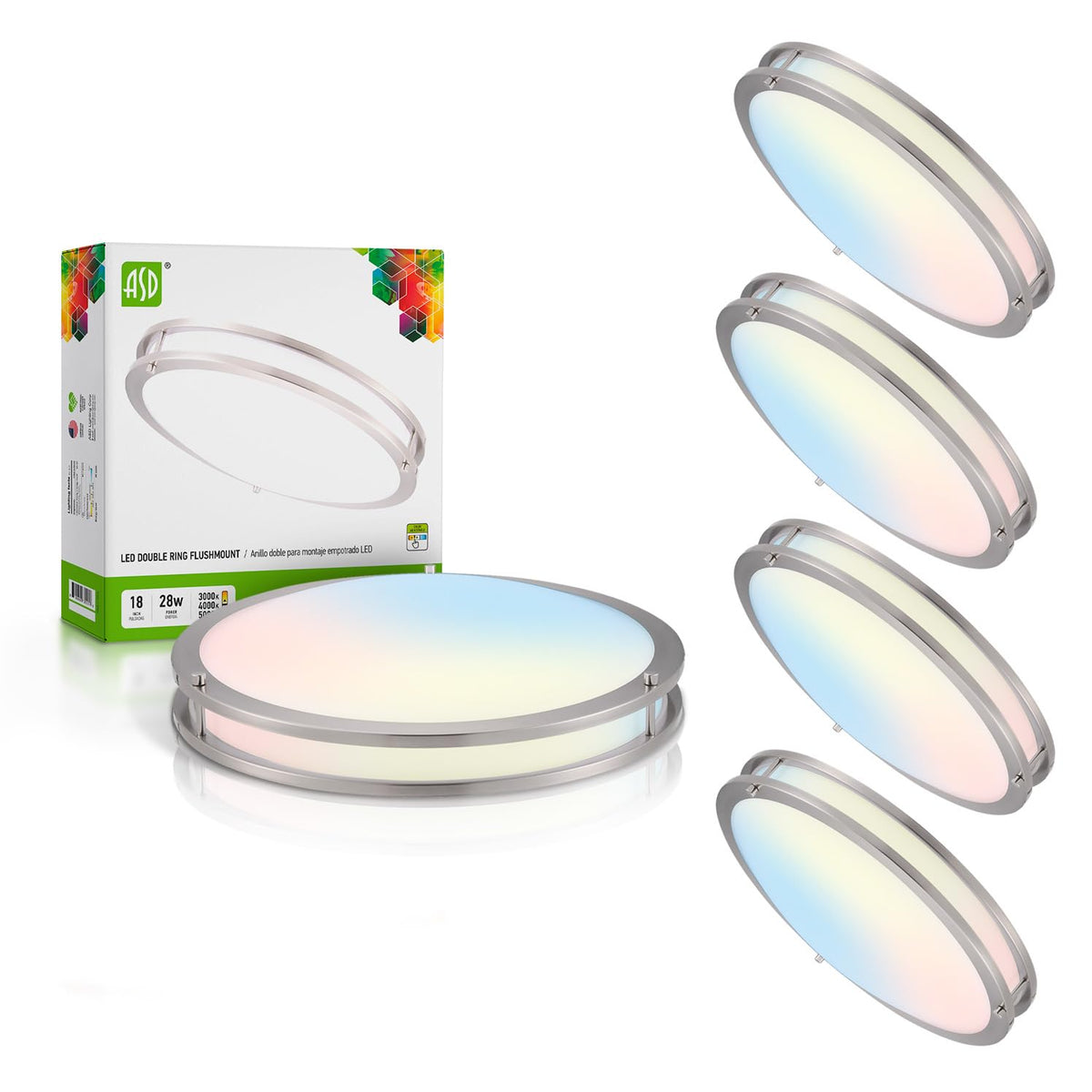 Asd Led 18 Inch Round Flush Mount Light Fixture | 28W 2250Lm 3000K-5000K 120V | 3Cct Dimmable Energy Star Etl Listed | Close To Ceiling Double Ring Lamp Low Profile Lighting | Nickel 4 Pack