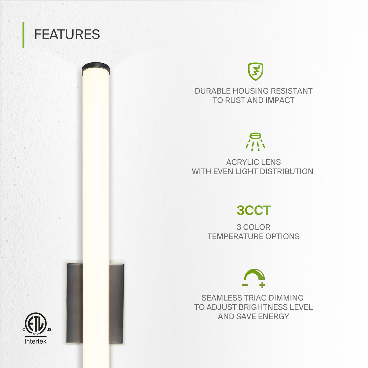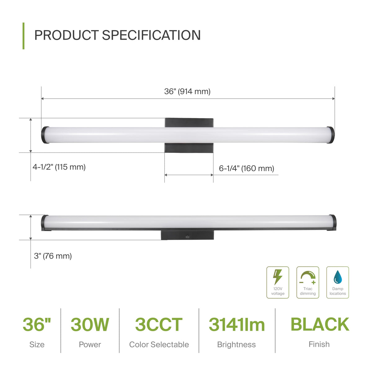 Asd Led 36 Inch Wall Mount Vanity Lighting Fixture | 30W 2100Lm 3000K-5000K 120V | 3Cct, Dimmable, Energy Star, Etl Listed | Bat